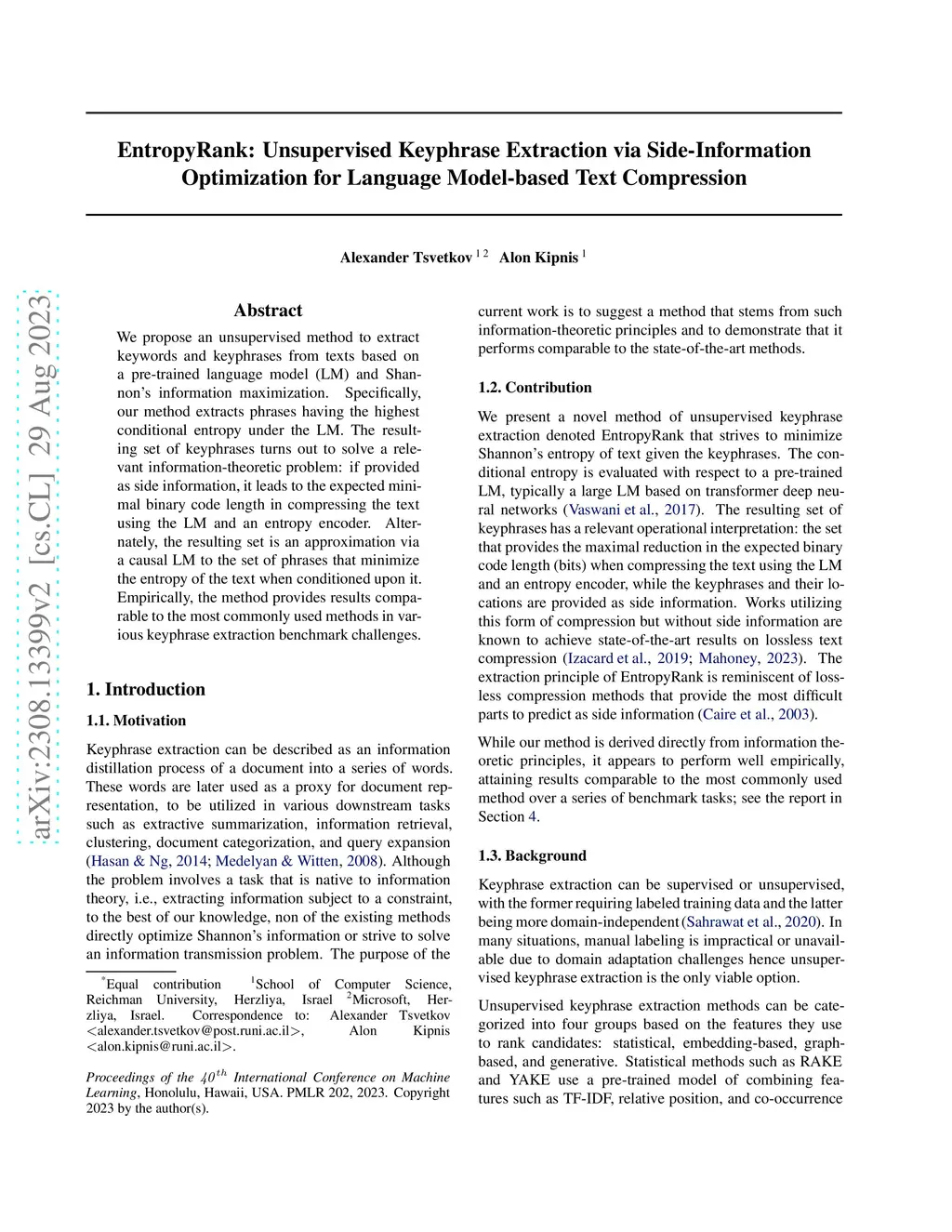 EntropyRank: Unsupervised Keyphrase Extraction via Side-Information