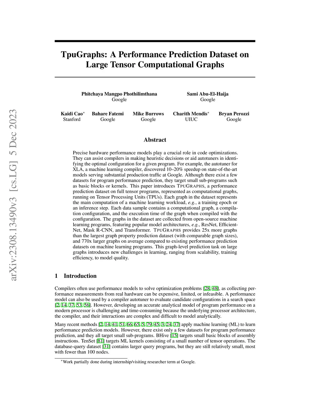 TpuGraphs: A Performance Prediction Dataset on Large Tensor Computational Graphs