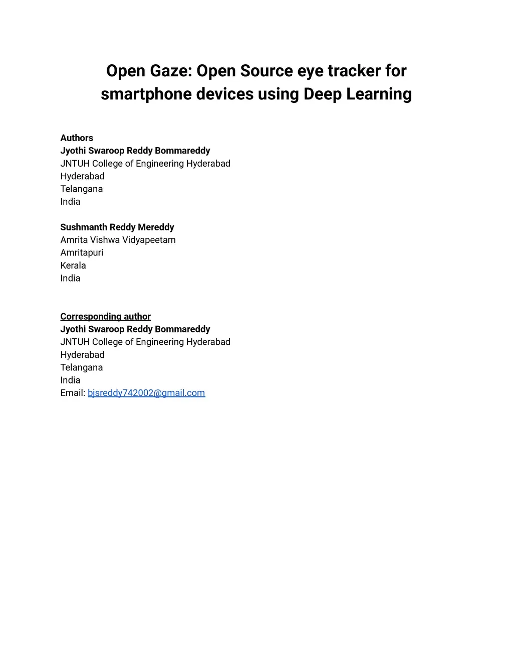 Open Gaze: Open Source eye tracker for smartphone devices using Deep