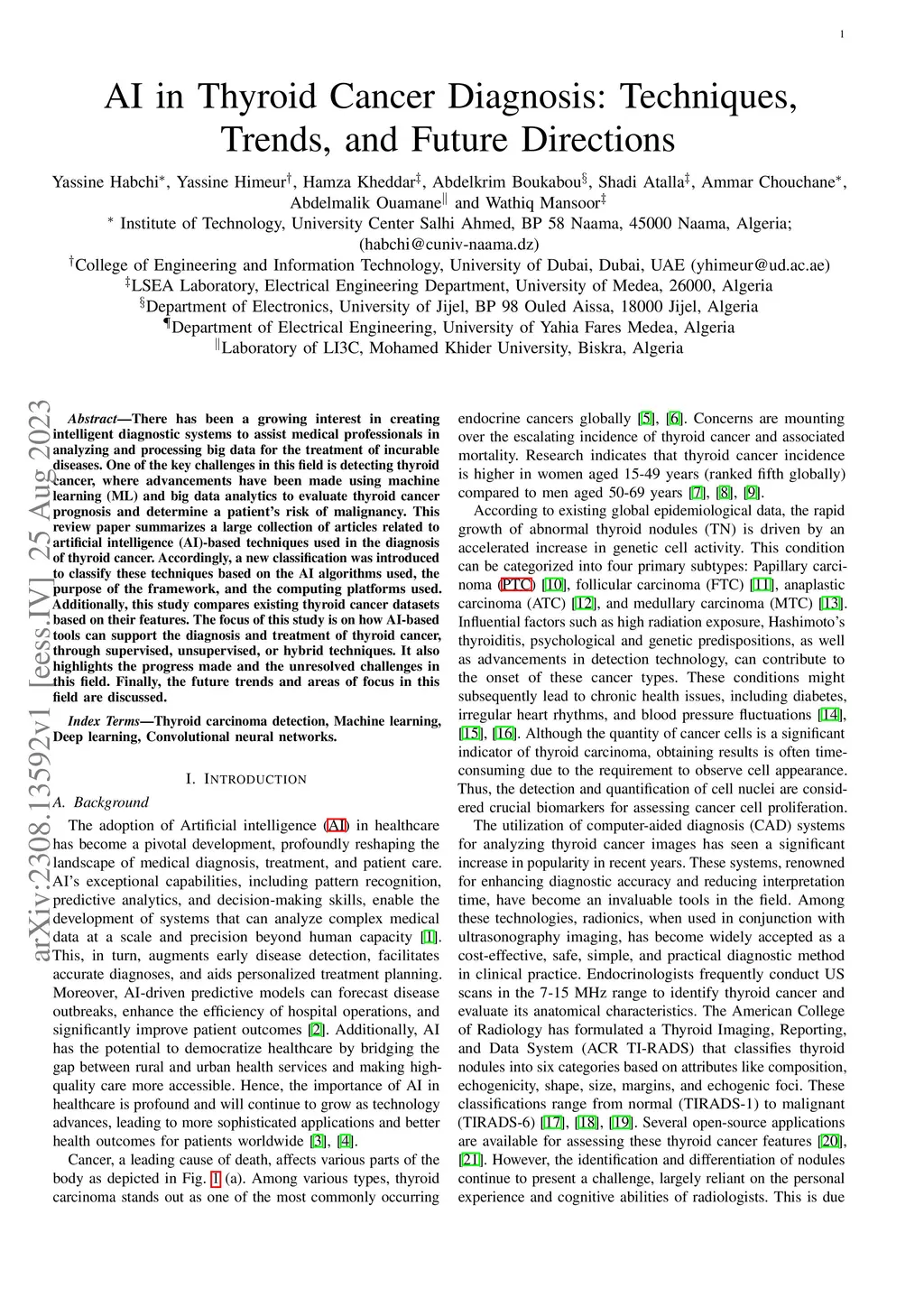 AI in Thyroid Cancer Diagnosis: Techniques, Trends, and Future