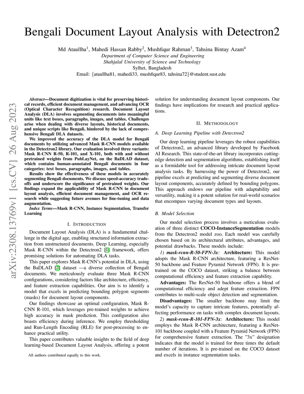 Bengali Document Layout Analysis with Detectron2