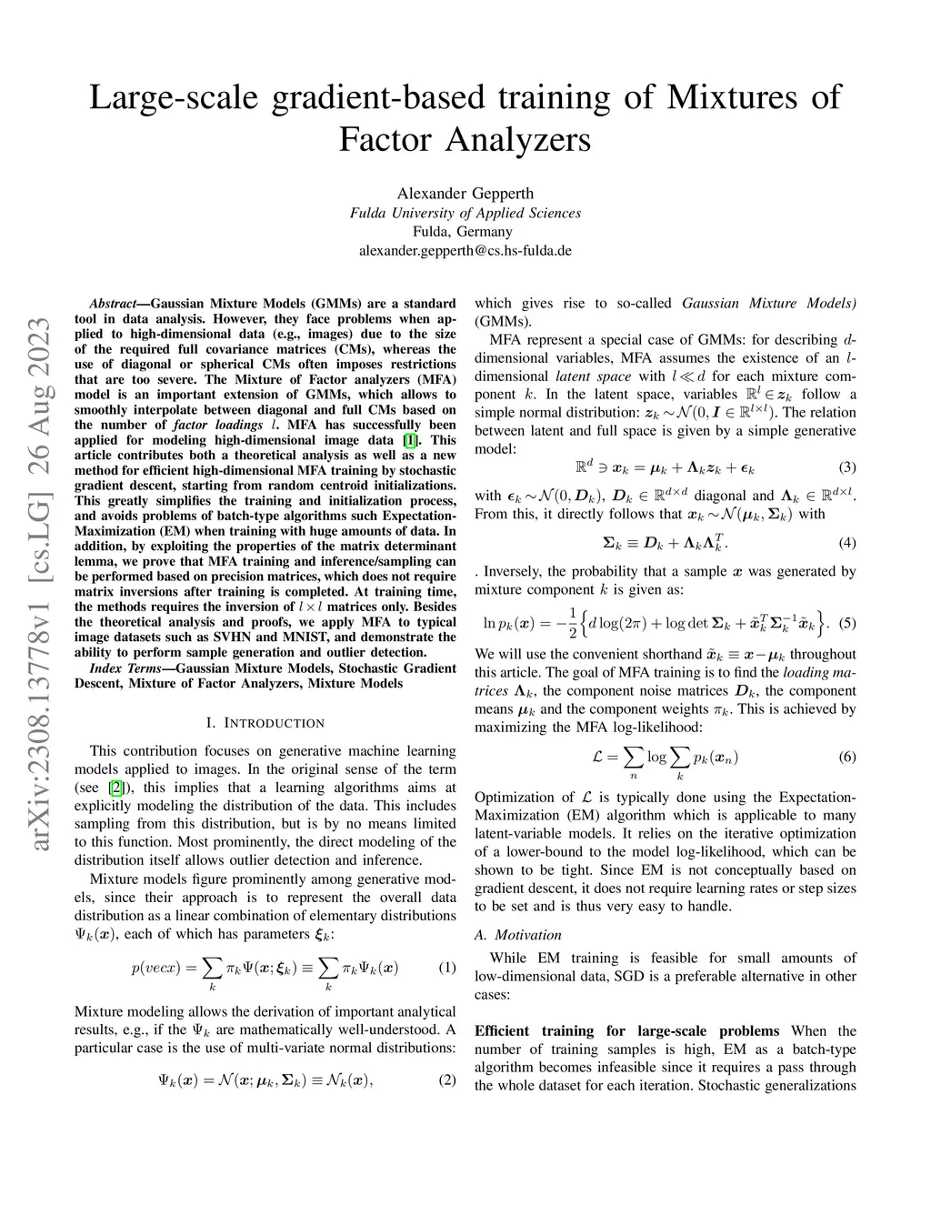 Large-scale gradient-based training of Mixtures of Factor Analyzers