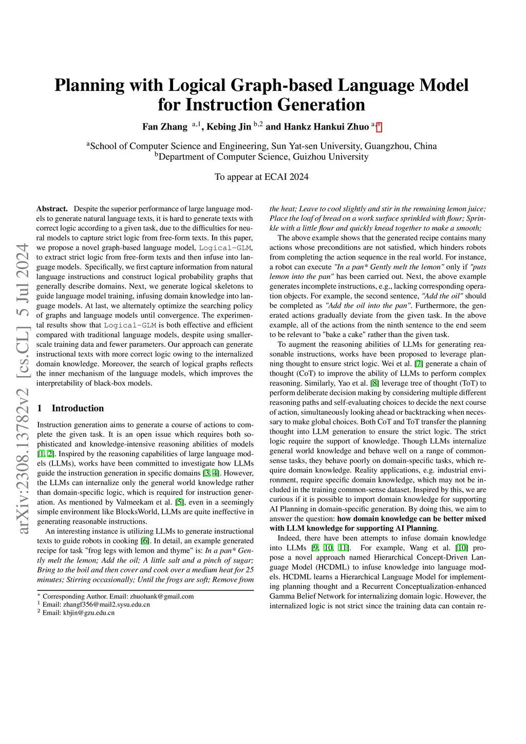 Planning with Logical Graph-based Language Model for Instruction