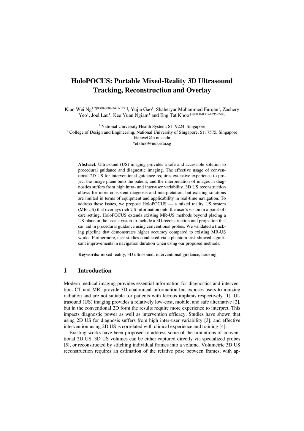 HoloPOCUS: Portable Mixed-Reality 3D Ultrasound Tracking, Reconstruction