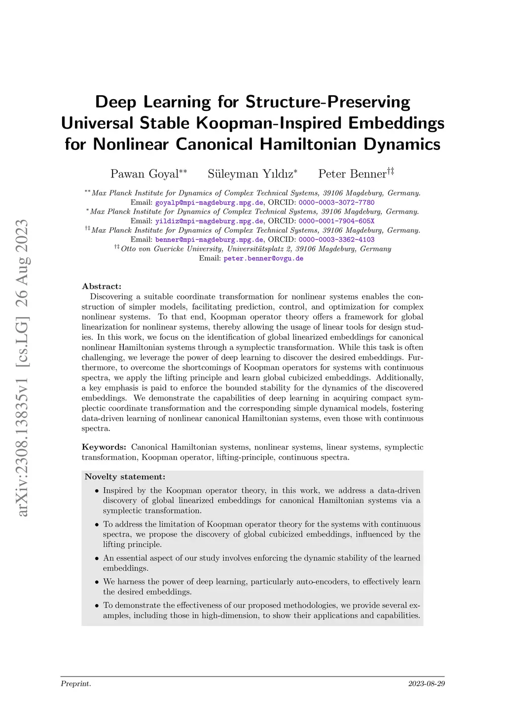Discovering a suitable coordinate transformation for nonlinear systems enables the construction of simpler models, facilitating prediction, control, and optimization for complex nonlinear systems. To that end, Koopman operator theory offers a framework for global linearization for nonlinear systems, thereby allowing the usage of linear tools for design studies. In this work, we focus on the identification of global linearized embeddings for canonical nonlinear Hamiltonian systems through a symplectic transformation. While this task is often challenging, we leverage the power of deep learning to discover the desired embeddings. Furthermore, to overcome the shortcomings of Koopman operators for systems with continuous spectra, we apply the lifting principle and learn global cubicized embeddings. Additionally, a key emphasis is paid to enforce the bounded stability for the dynamics of the discovered embeddings. We demonstrate the capabilities of deep learning in acquiring compact symplectic coordinate transformation and the corresponding simple dynamical models, fostering data-driven learning of nonlinear canonical Hamiltonian systems, even those with continuous spectra.