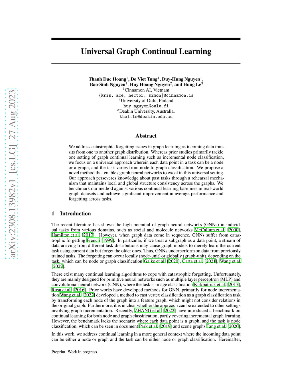 Universal Graph Continual Learning