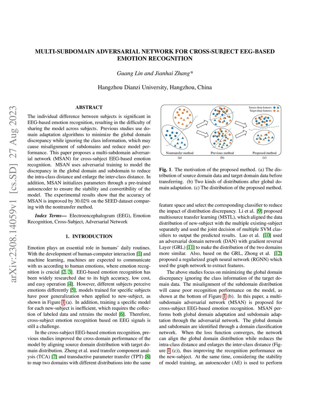 Multi-Subdomain Adversarial Network for Cross-Subject EEG-based Emotion