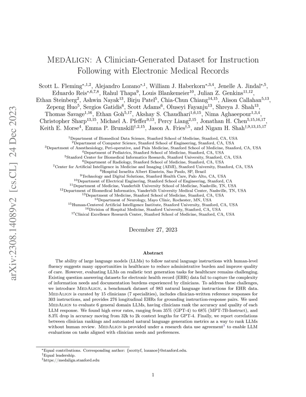 MedAlign: A Clinician-Generated Dataset for Instruction Following with