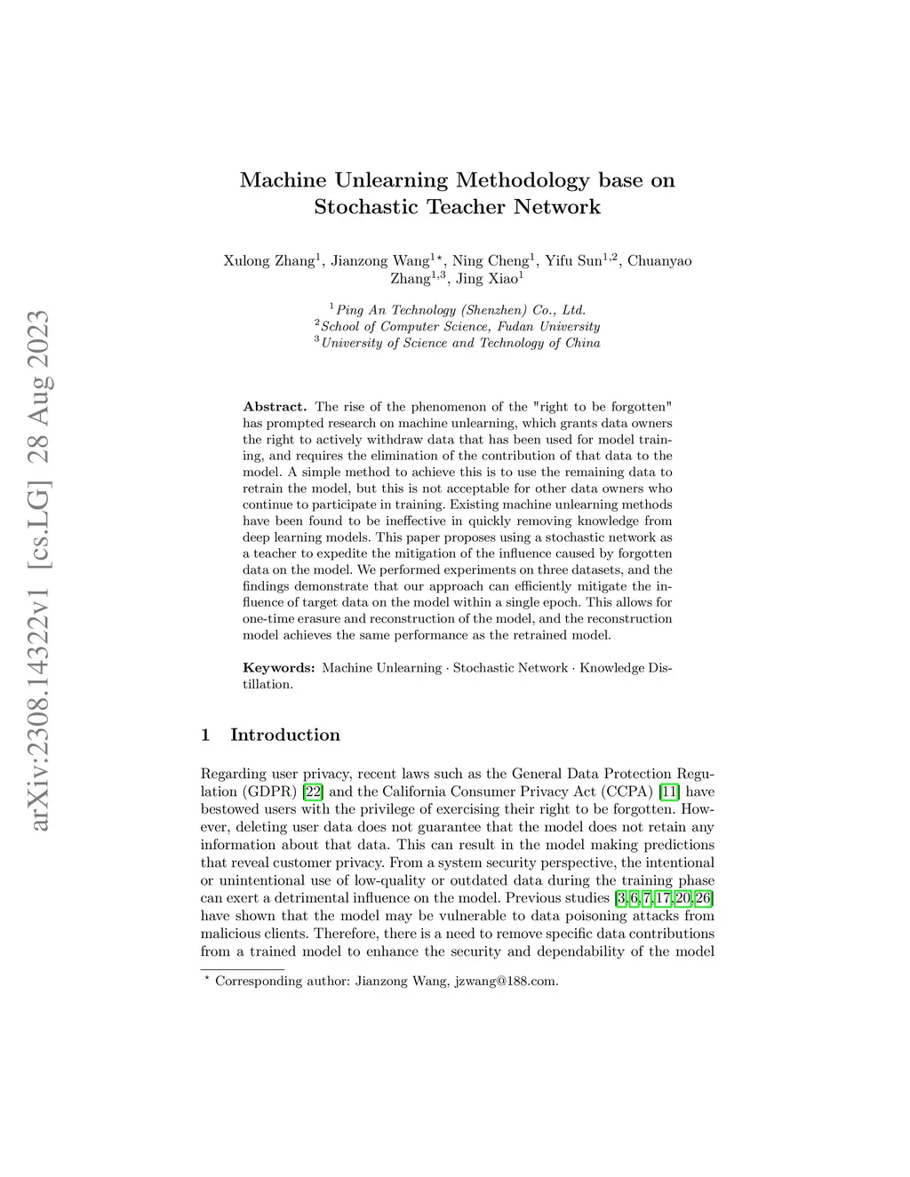 Machine Unlearning Methodology base on Stochastic Teacher Network