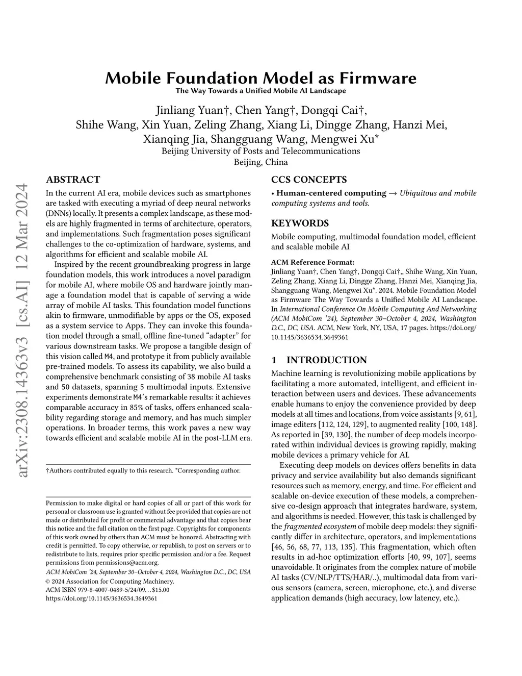 Mobile Foundation Model as Firmware