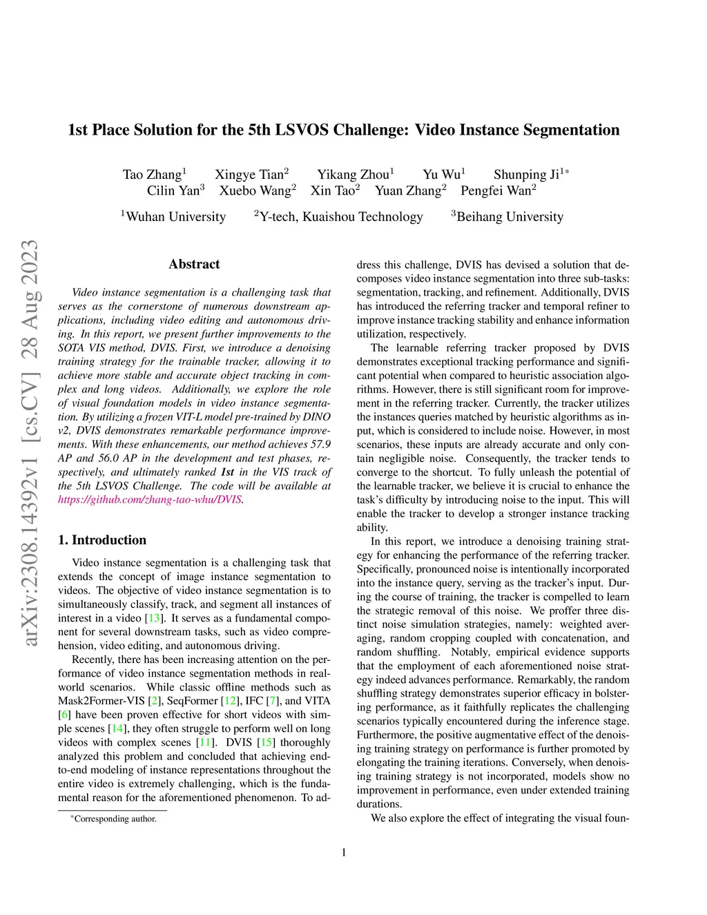 Video instance segmentation is a challenging task that serves as the cornerstone of numerous downstream applications, including video editing and autonomous driving. In this report, we present further improvements to the SOTA VIS method, DVIS. First, we introduce a denoising training strategy for the trainable tracker, allowing it to achieve more stable and accurate object tracking in complex and long videos. Additionally, we explore the role of visual foundation models in video instance segmentation. By utilizing a frozen VIT-L model pre-trained by DINO v2, DVIS demonstrates remarkable performance improvements. With these enhancements, our method achieves 57.9 AP and 56.0 AP in the development and test phases, respectively, and ultimately ranked 1st in the VIS track of the 5th LSVOS Challenge. The code will be available at https://github.com/zhang-tao-whu/DVIS.