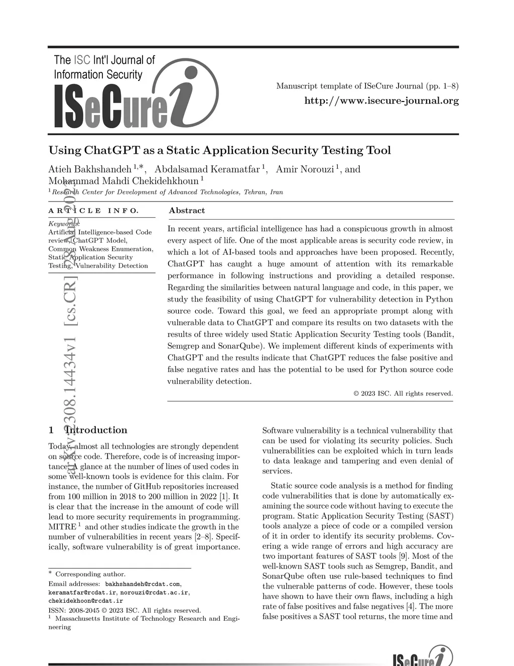 In recent years, artificial intelligence has had a conspicuous growth in almost every aspect of life. One of the most applicable areas is security code review, in which a lot of AI-based tools and approaches have been proposed. Recently, ChatGPT has caught a huge amount of attention with its remarkable performance in following instructions and providing a detailed response. Regarding the similarities between natural language and code, in this paper, we study the feasibility of using ChatGPT for vulnerability detection in Python source code. Toward this goal, we feed an appropriate prompt along with vulnerable data to ChatGPT and compare its results on two datasets with the results of three widely used Static Application Security Testing tools (Bandit, Semgrep and SonarQube). We implement different kinds of experiments with ChatGPT and the results indicate that ChatGPT reduces the false positive and false negative rates and has the potential to be used for Python source code vulnerability detection.