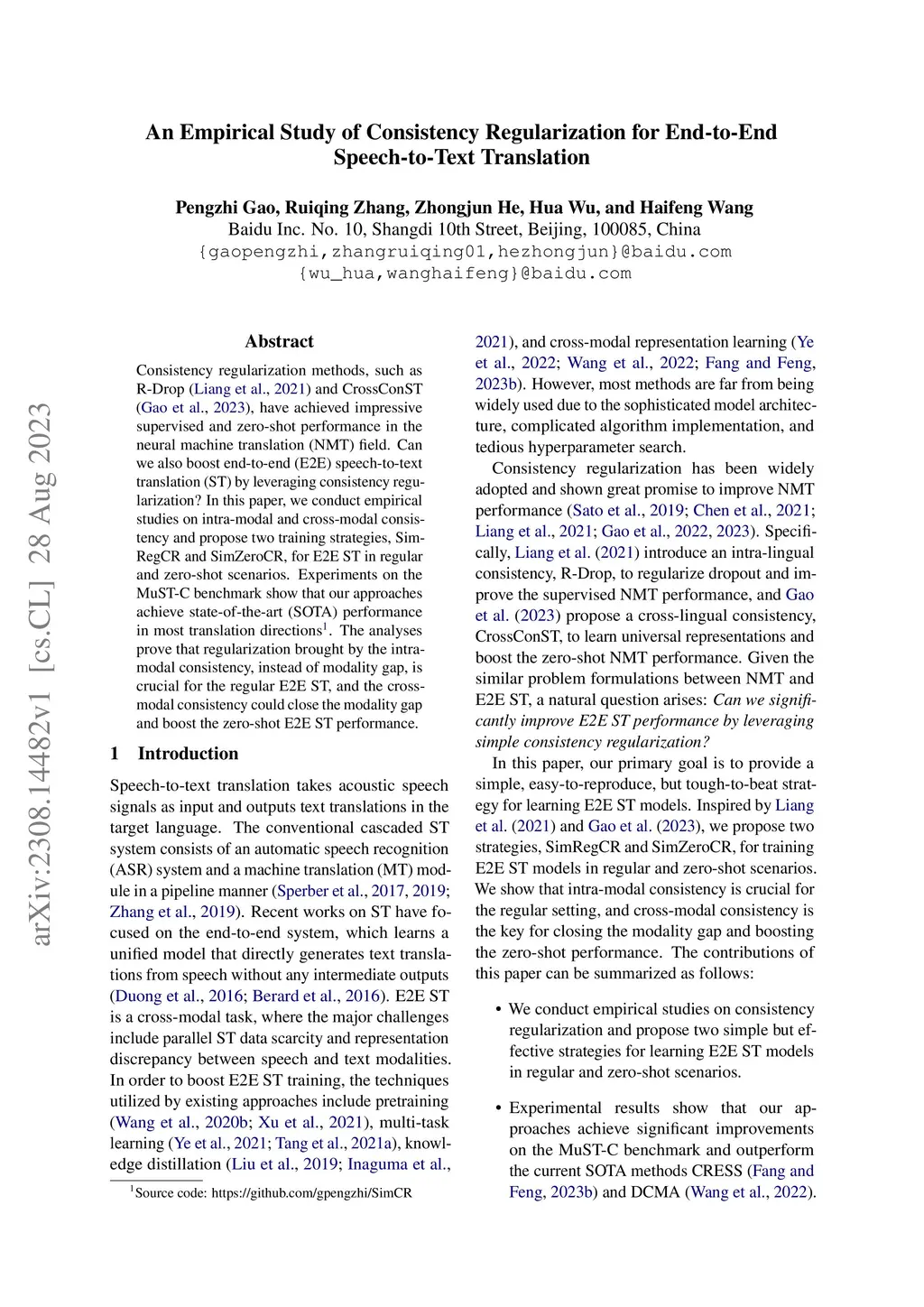 Consistency regularization methods, such as R-Drop (Liang et al., 2021) and CrossConST (Gao et al., 2023), have achieved impressive supervised and zero-shot performance in the neural machine translation (NMT) field. Can we also boost end-to-end (E2E) speech-to-text translation (ST) by leveraging consistency regularization? In this paper, we conduct empirical studies on intra-modal and cross-modal consistency and propose two training strategies, SimRegCR and SimZeroCR, for E2E ST in regular and zero-shot scenarios. Experiments on the MuST-C benchmark show that our approaches achieve state-of-the-art (SOTA) performance in most translation directions. The analyses prove that regularization brought by the intra-modal consistency, instead of modality gap, is crucial for the regular E2E ST, and the cross-modal consistency could close the modality gap and boost the zero-shot E2E ST performance.