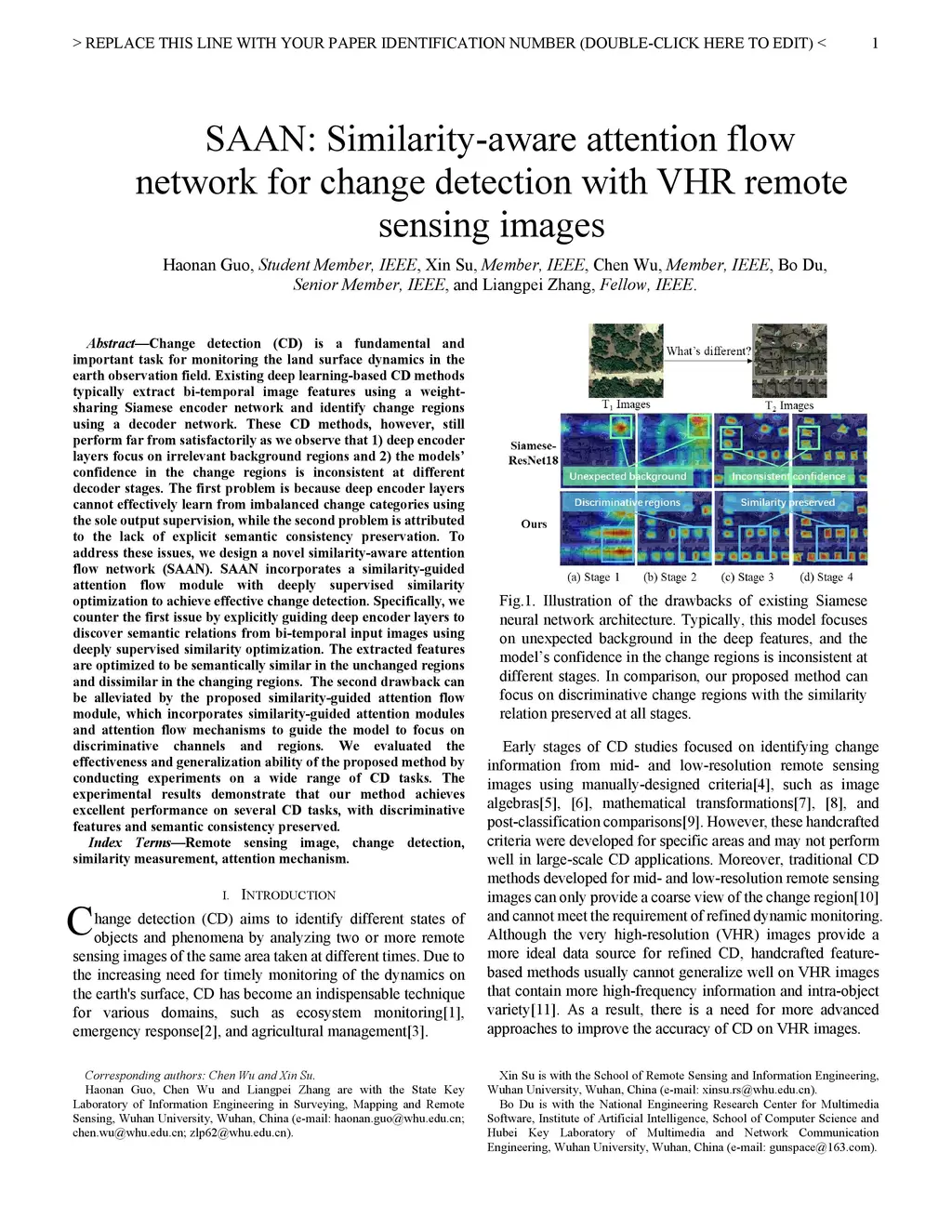 Change detection (CD) is a fundamental and important task for monitoring the land surface dynamics in the earth observation field. Existing deep learning-based CD methods typically extract bi-temporal image features using a weight-sharing Siamese encoder network and identify change regions using a decoder network. These CD methods, however, still perform far from satisfactorily as we observe that 1) deep encoder layers focus on irrelevant background regions and 2) the models' confidence in the change regions is inconsistent at different decoder stages. The first problem is because deep encoder layers cannot effectively learn from imbalanced change categories using the sole output supervision, while the second problem is attributed to the lack of explicit semantic consistency preservation. To address these issues, we design a novel similarity-aware attention flow network (SAAN). SAAN incorporates a similarity-guided attention flow module with deeply supervised similarity optimization to achieve effective change detection. Specifically, we counter the first issue by explicitly guiding deep encoder layers to discover semantic relations from bi-temporal input images using deeply supervised similarity optimization. The extracted features are optimized to be semantically similar in the unchanged regions and dissimilar in the changing regions. The second drawback can be alleviated by the proposed similarity-guided attention flow module, which incorporates similarity-guided attention modules and attention flow mechanisms to guide the model to focus on discriminative channels and regions. We evaluated the effectiveness and generalization ability of the proposed method by conducting experiments on a wide range of CD tasks. The experimental results demonstrate that our method achieves excellent performance on several CD tasks, with discriminative features and semantic consistency preserved.