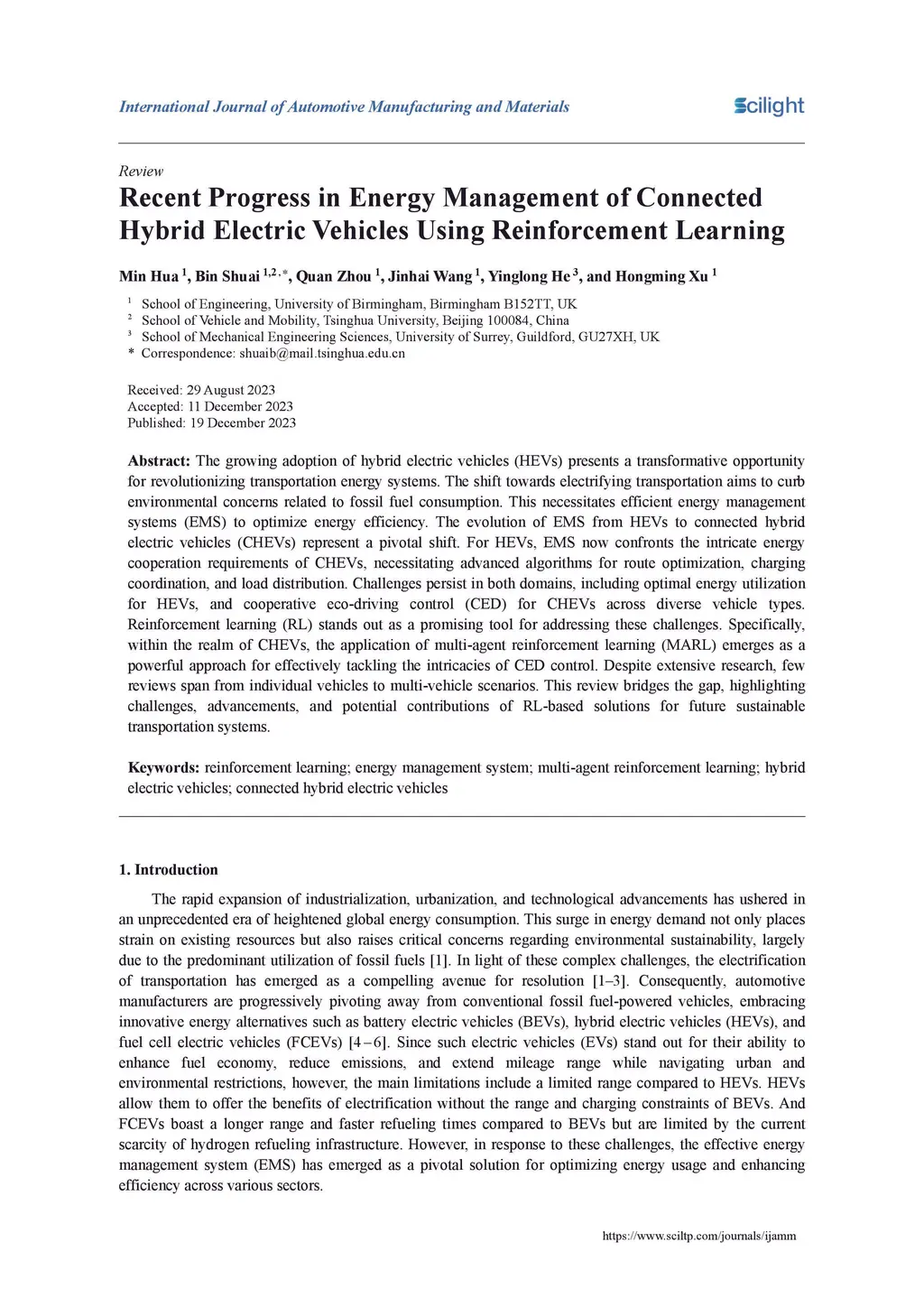 Recent Progress in Energy Management of Connected Hybrid Electric