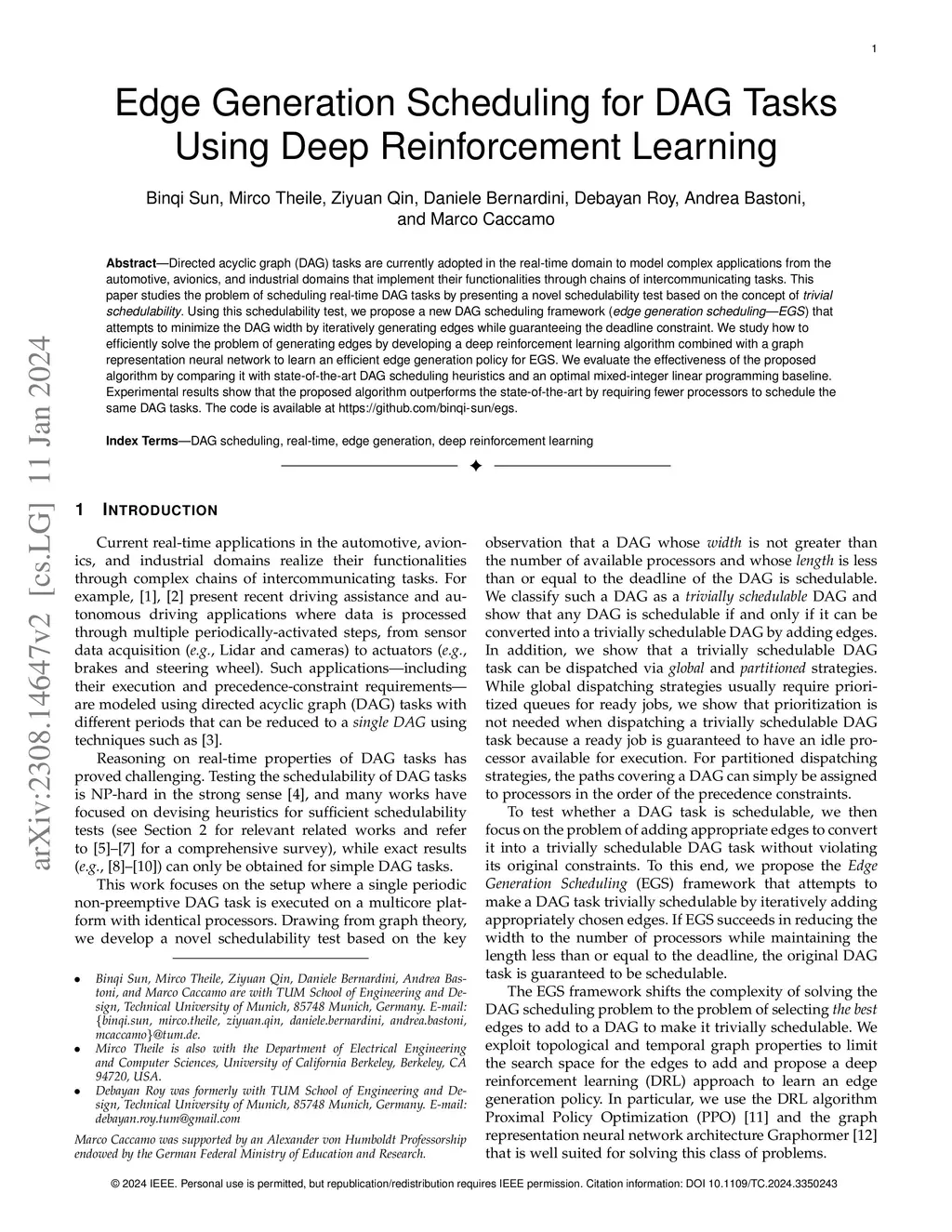 Edge Generation Scheduling for DAG Tasks Using Deep Reinforcement