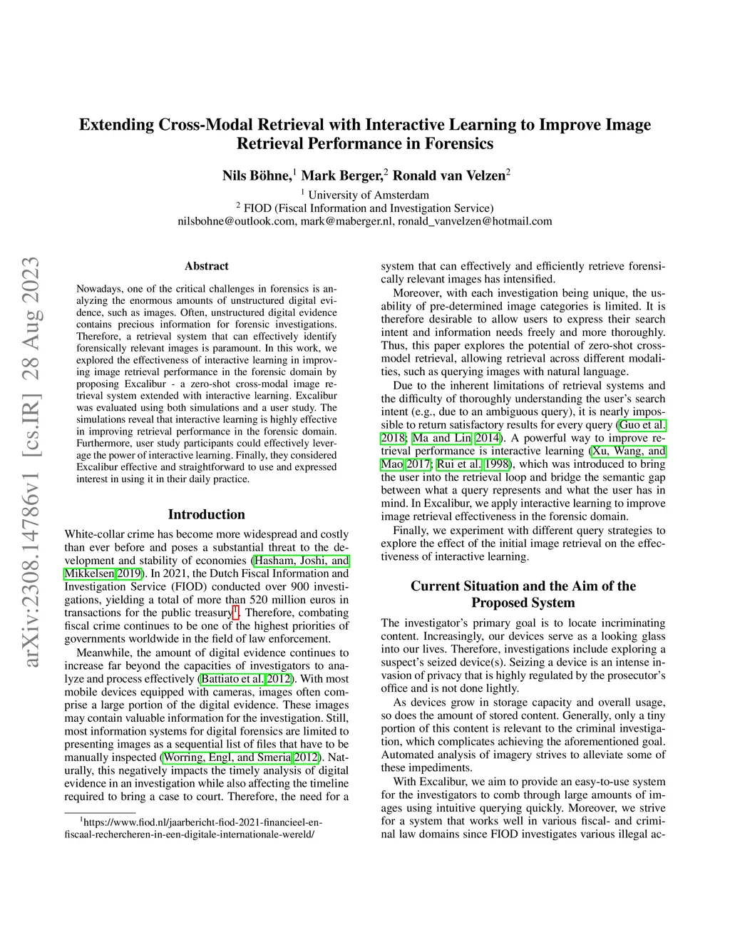 Nowadays, one of the critical challenges in forensics is analyzing the enormous amounts of unstructured digital evidence, such as images. Often, unstructured digital evidence contains precious information for forensic investigations. Therefore, a retrieval system that can effectively identify forensically relevant images is paramount. In this work, we explored the effectiveness of interactive learning in improving image retrieval performance in the forensic domain by proposing Excalibur - a zero-shot cross-modal image retrieval system extended with interactive learning. Excalibur was evaluated using both simulations and a user study. The simulations reveal that interactive learning is highly effective in improving retrieval performance in the forensic domain. Furthermore, user study participants could effectively leverage the power of interactive learning. Finally, they considered Excalibur effective and straightforward to use and expressed interest in using it in their daily practice.