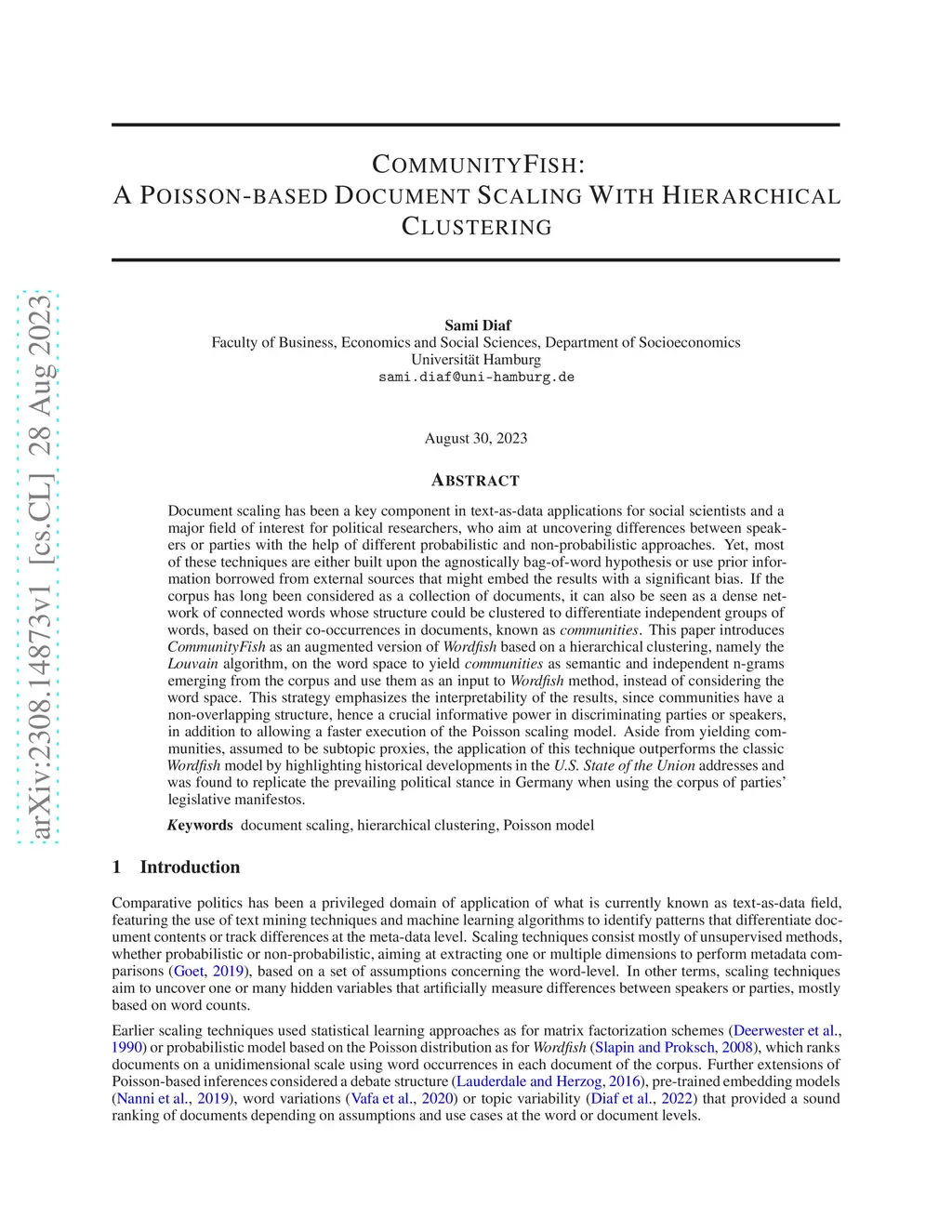 CommunityFish: A Poisson-based Document Scaling With Hierarchical