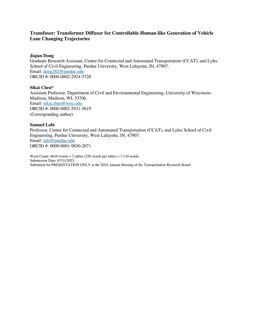 of Vehicle Lane Changing Trajectories