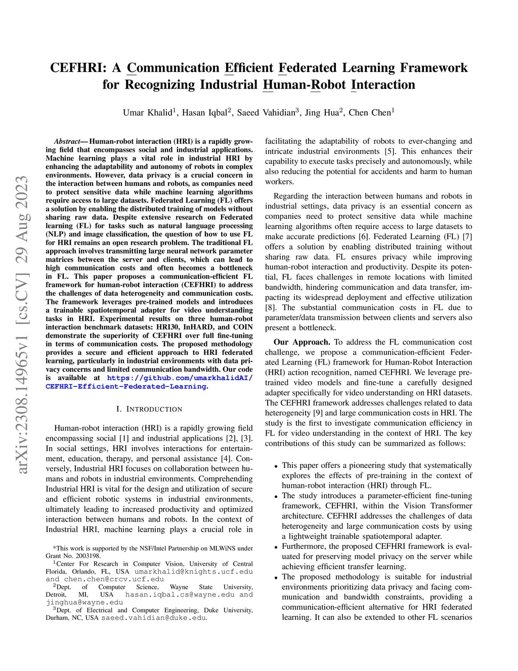 CEFHRI: A Communication Efficient Federated Learning Framework for