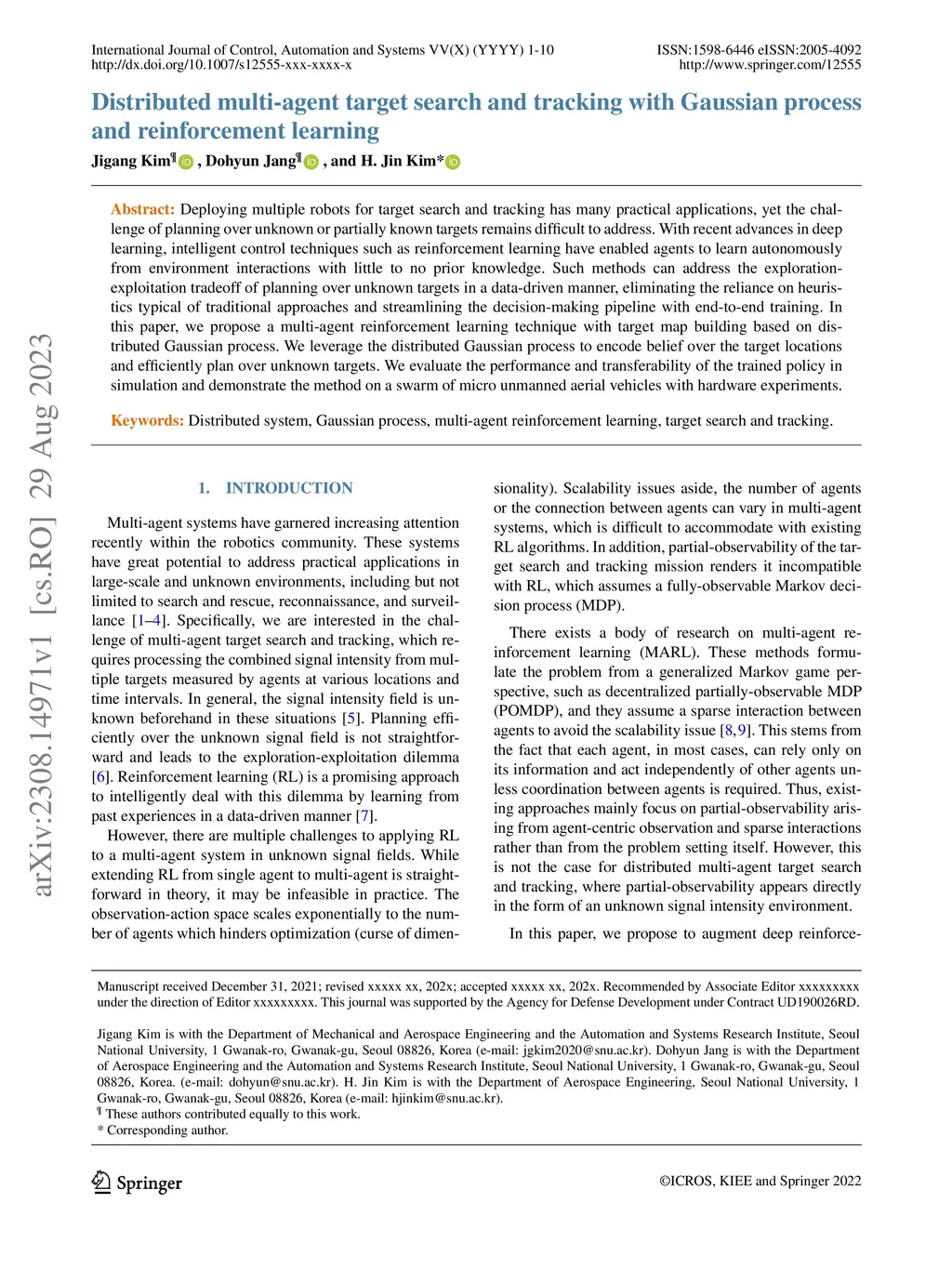 Deploying multiple robots for target search and tracking has many practical applications, yet the challenge of planning over unknown or partially known targets remains difficult to address. With recent advances in deep learning, intelligent control techniques such as reinforcement learning have enabled agents to learn autonomously from environment interactions with little to no prior knowledge. Such methods can address the exploration-exploitation tradeoff of planning over unknown targets in a data-driven manner, eliminating the reliance on heuristics typical of traditional approaches and streamlining the decision-making pipeline with end-to-end training. In this paper, we propose a multi-agent reinforcement learning technique with target map building based on distributed Gaussian process. We leverage the distributed Gaussian process to encode belief over the target locations and efficiently plan over unknown targets. We evaluate the performance and transferability of the trained policy in simulation and demonstrate the method on a swarm of micro unmanned aerial vehicles with hardware experiments.