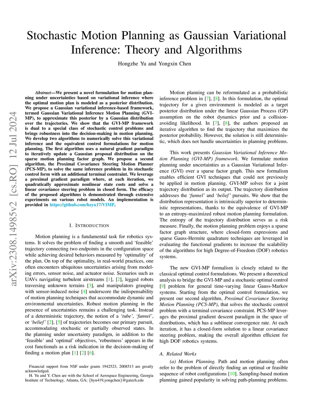 Stochastic Motion Planning as Gaussian Variational Inference: Theory and