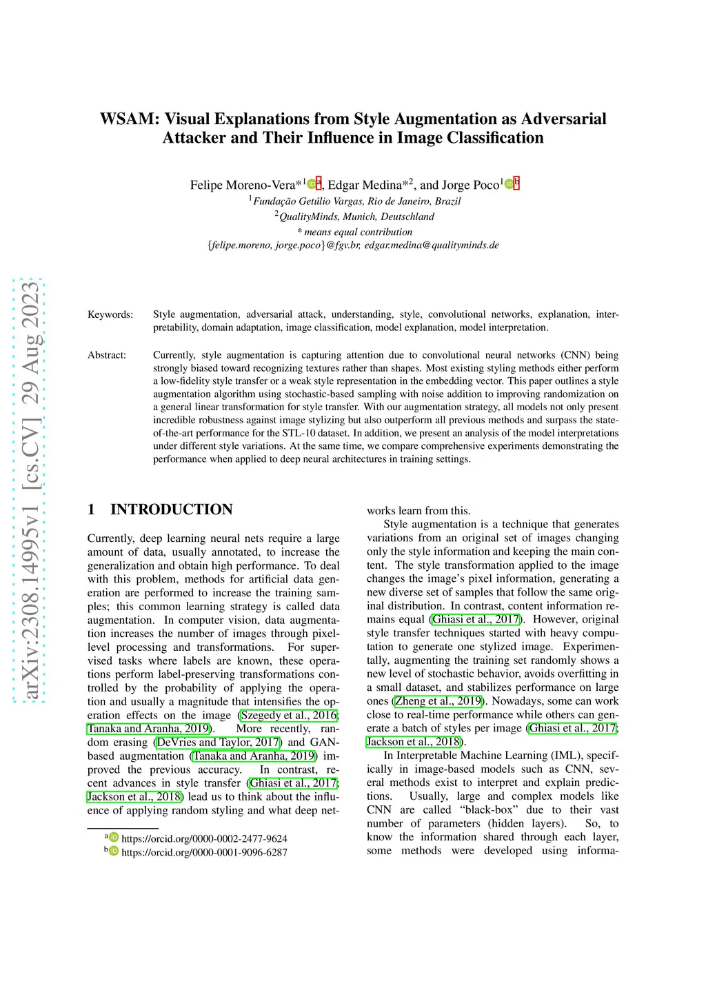 WSAM: Visual Explanations from Style Augmentation as Adversarial