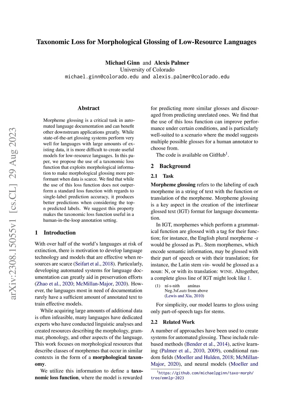 Taxonomic Loss for Morphological Glossing of Low-Resource Languages
