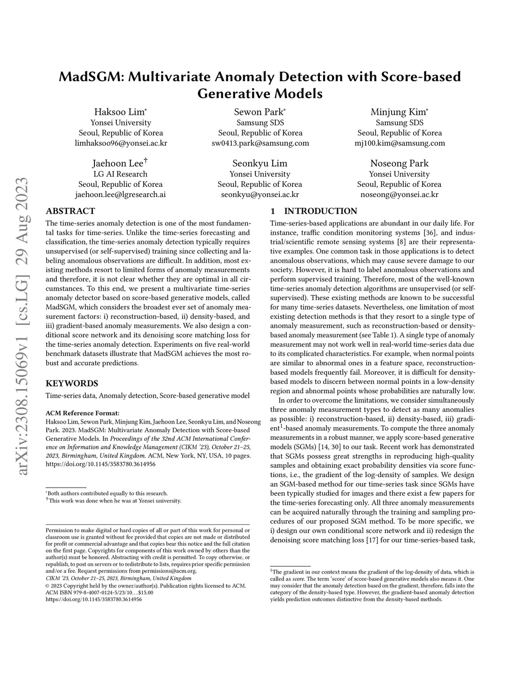 MadSGM: Multivariate Anomaly Detection with Score-based Generative