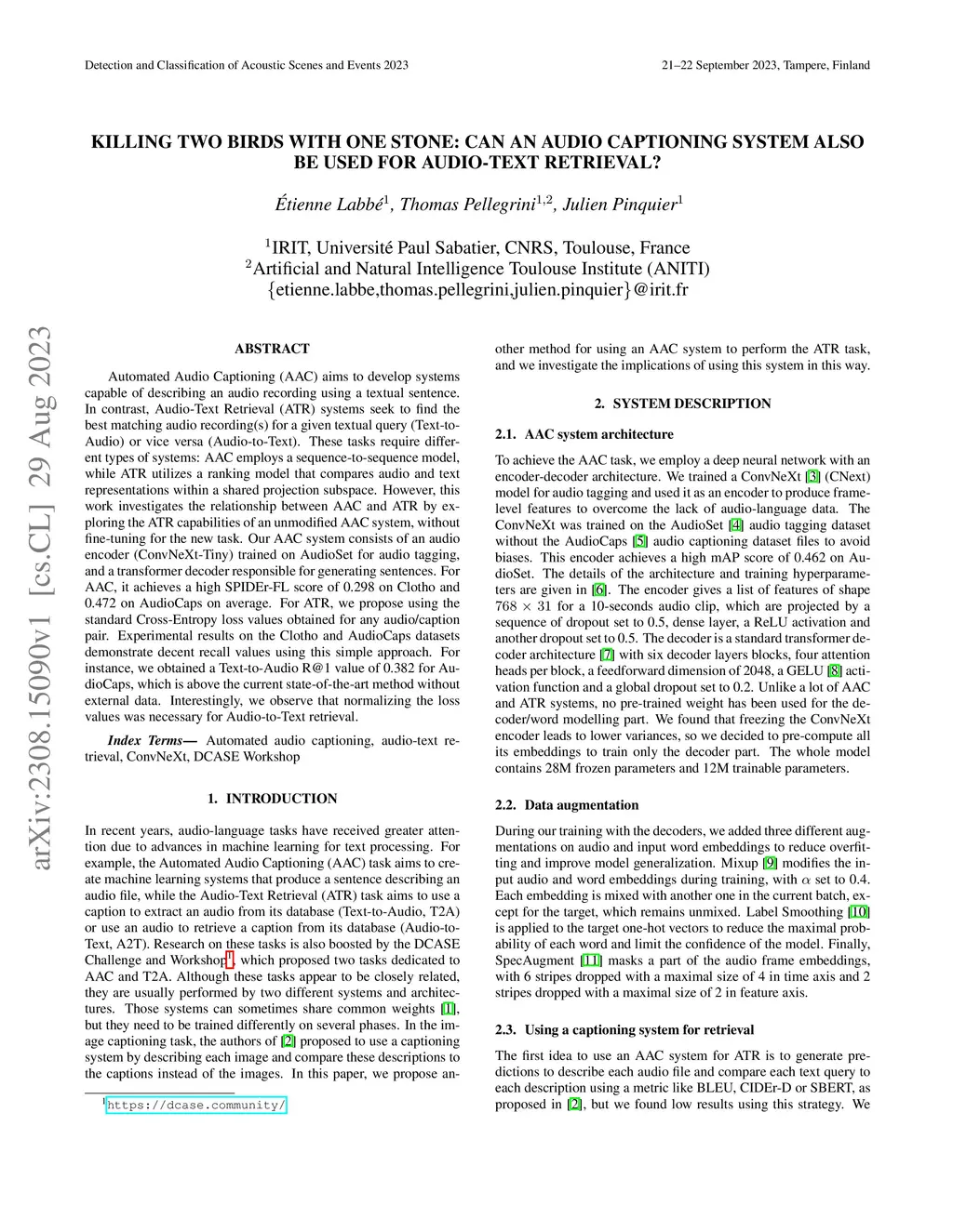 Killing two birds with one stone: Can an audio captioning system also be