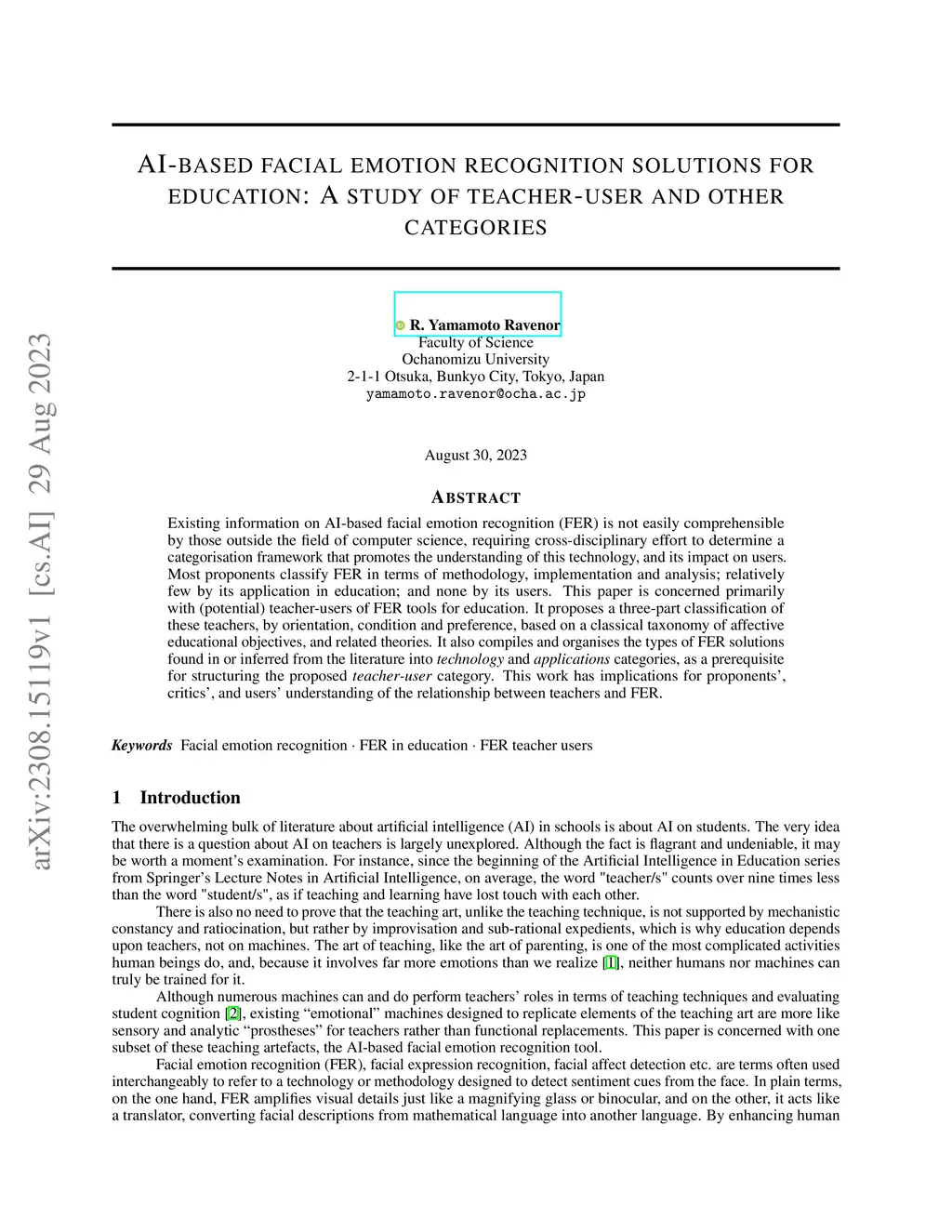 Existing information on AI-based facial emotion recognition (FER) is not easily comprehensible by those outside the field of computer science, requiring cross-disciplinary effort to determine a categorisation framework that promotes the understanding of this technology, and its impact on users. Most proponents classify FER in terms of methodology, implementation and analysis; relatively few by its application in education; and none by its users. This paper is concerned primarily with (potential) teacher-users of FER tools for education. It proposes a three-part classification of these teachers, by orientation, condition and preference, based on a classical taxonomy of affective educational objectives, and related theories. It also compiles and organises the types of FER solutions found in or inferred from the literature into "technology" and "applications" categories, as a prerequisite for structuring the proposed "teacher-user" category. This work has implications for proponents', critics', and users' understanding of the relationship between teachers and FER.
