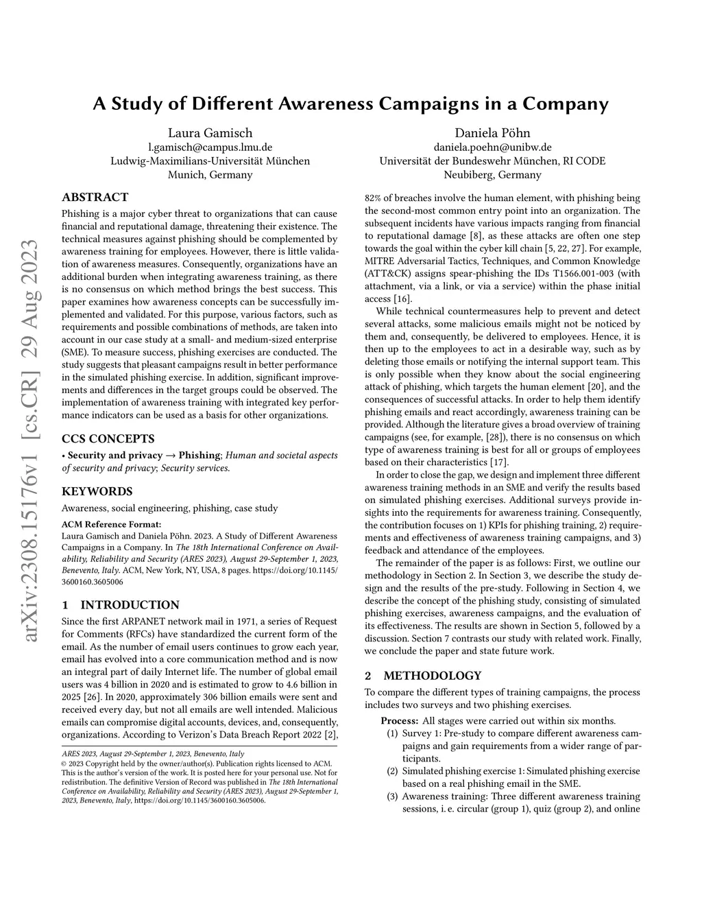 Phishing is a major cyber threat to organizations that can cause financial and reputational damage, threatening their existence. The technical measures against phishing should be complemented by awareness training for employees. However, there is little validation of awareness measures. Consequently, organizations have an additional burden when integrating awareness training, as there is no consensus on which method brings the best success. This paper examines how awareness concepts can be successfully implemented and validated. For this purpose, various factors, such as requirements and possible combinations of methods, are taken into account in our case study at a small- and medium-sized enterprise (SME). To measure success, phishing exercises are conducted. The study suggests that pleasant campaigns result in better performance in the simulated phishing exercise. In addition, significant improvements and differences in the target groups could be observed. The implementation of awareness training with integrated key performance indicators can be used as a basis for other organizations.