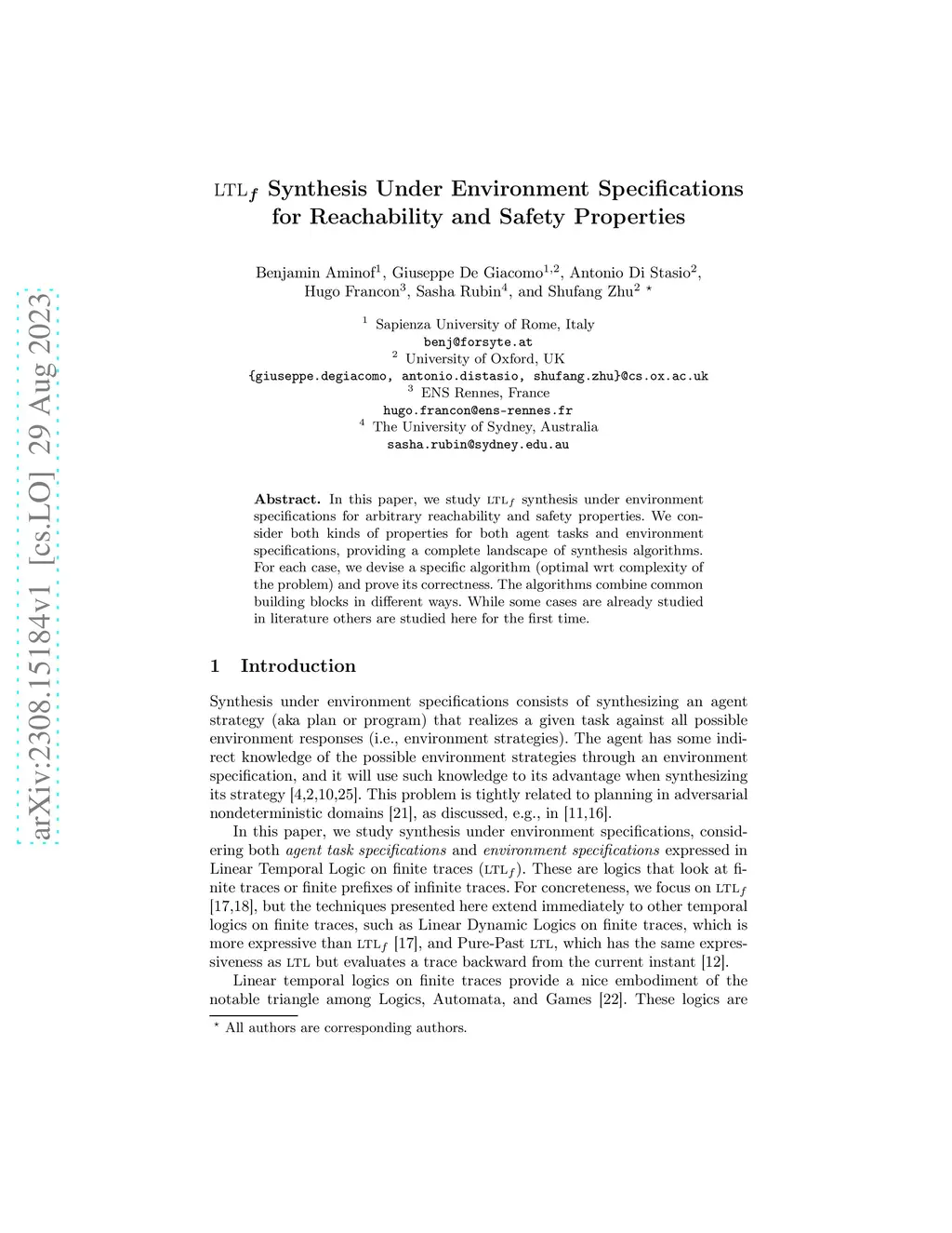 In this paper, we study LTLf synthesis under environment specifications for arbitrary reachability and safety properties. We consider both kinds of properties for both agent tasks and environment specifications, providing a complete landscape of synthesis algorithms. For each case, we devise a specific algorithm (optimal wrt complexity of the problem) and prove its correctness. The algorithms combine common building blocks in different ways. While some cases are already studied in literature others are studied here for the first time.