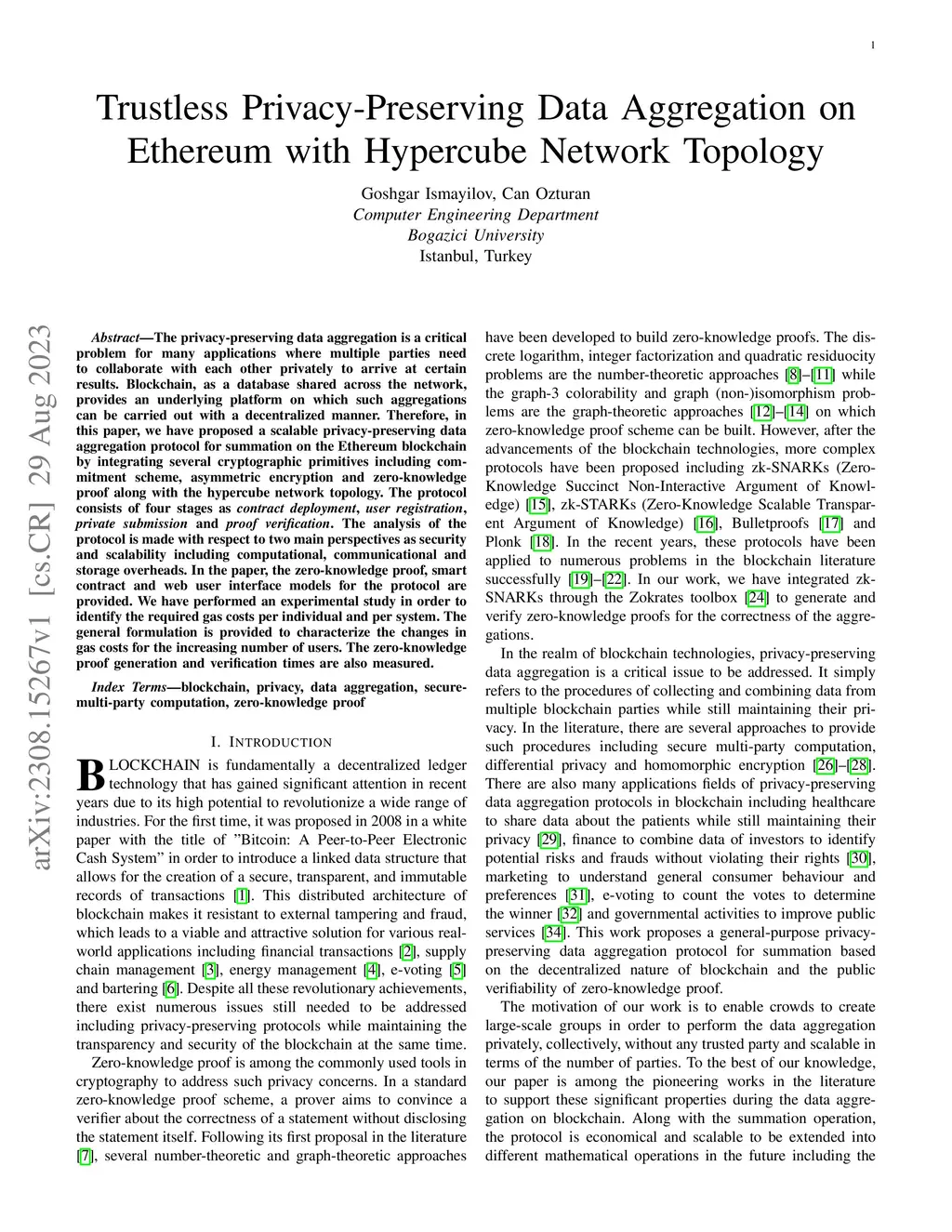 Trustless Privacy-Preserving Data Aggregation on Ethereum with Hypercube