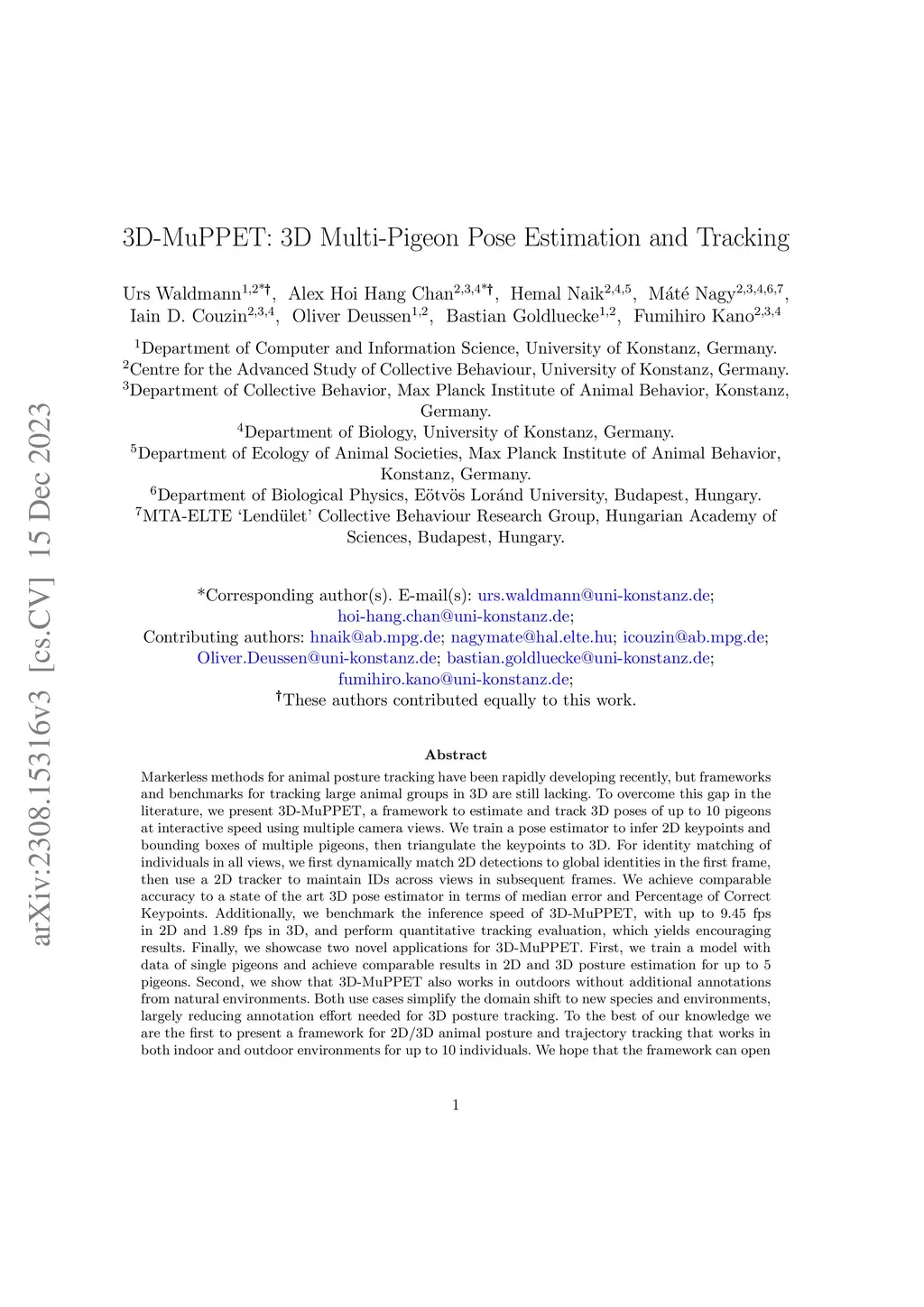 3D-MuPPET: 3D Multi-Pigeon Pose Estimation and Tracking