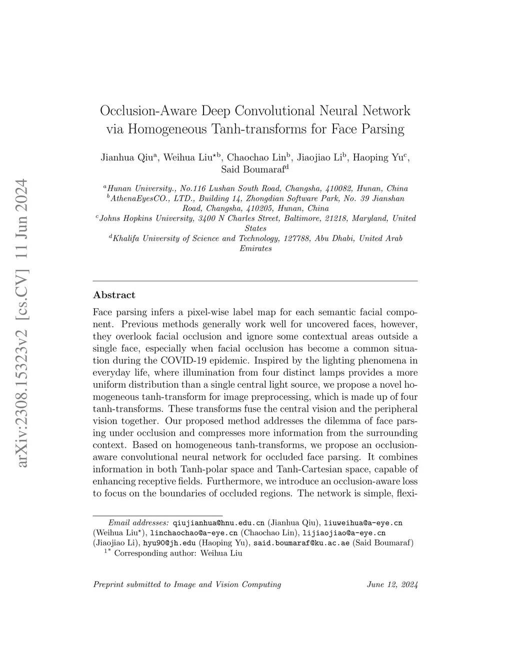 Tanh-transforms for Face Parsing