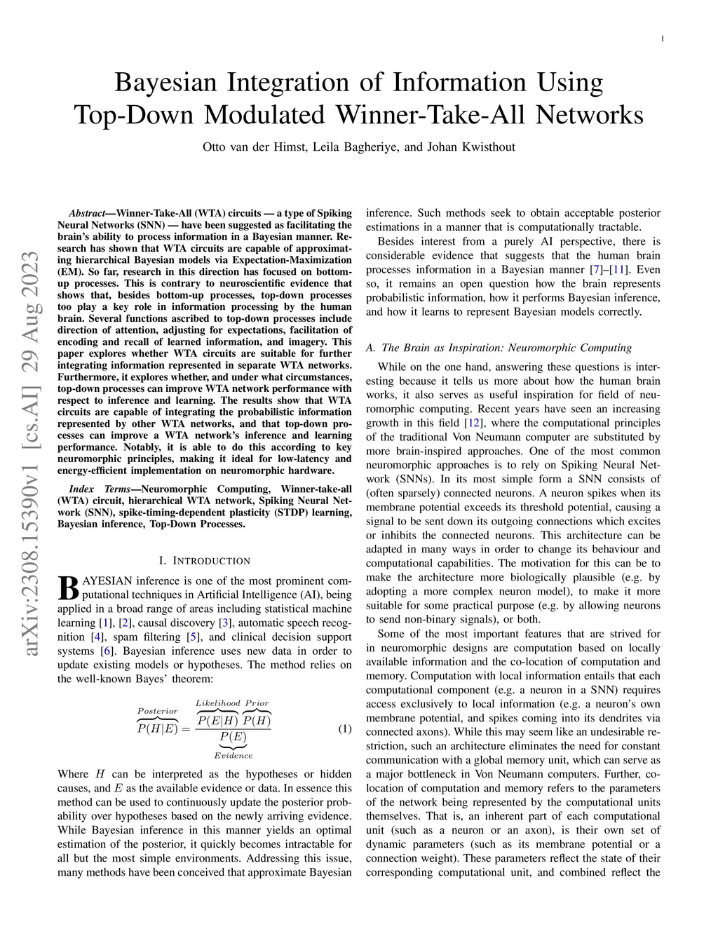 Bayesian Integration of Information Using Top-Down Modulated WTA