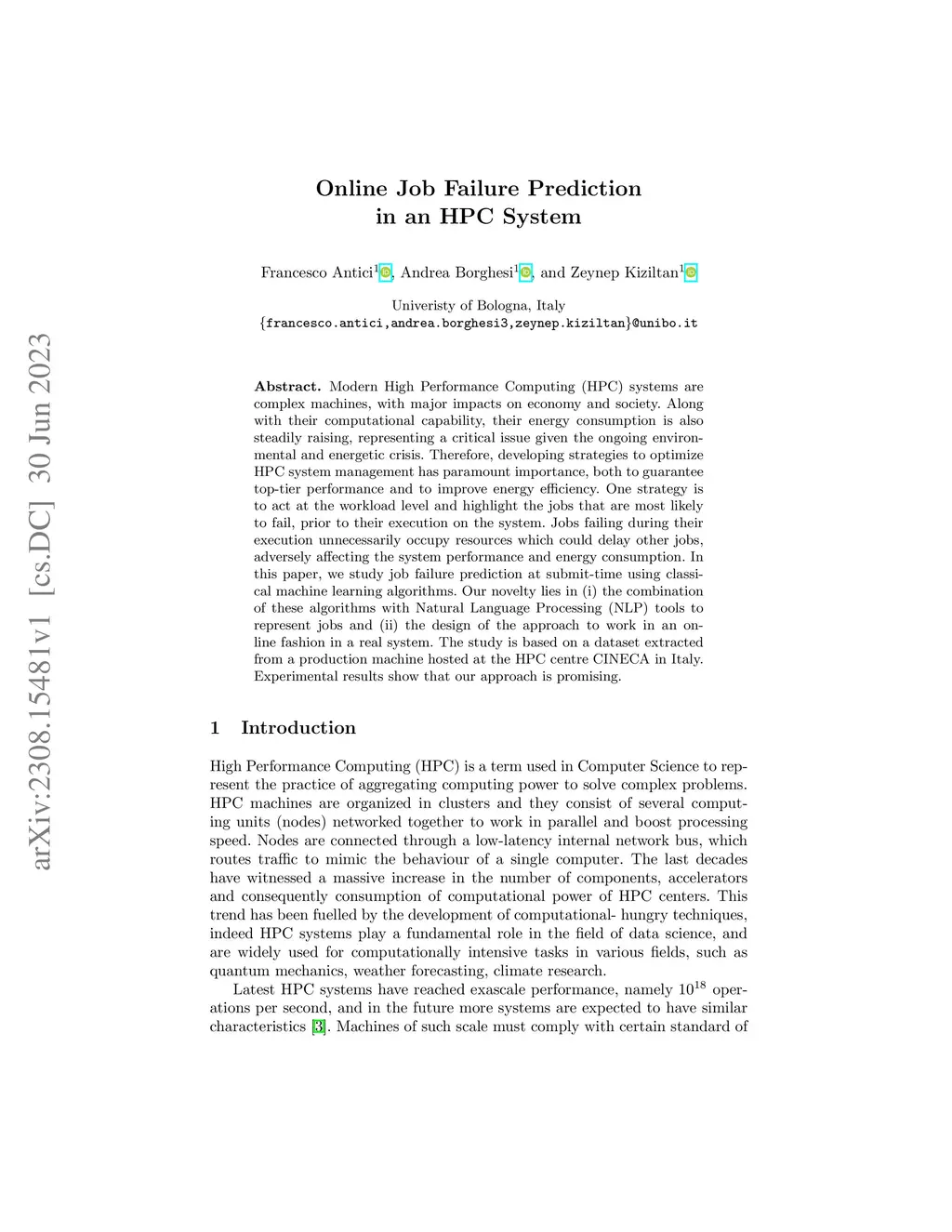 Modern High Performance Computing (HPC) systems are complex machines, with major impacts on economy and society. Along with their computational capability, their energy consumption is also steadily raising, representing a critical issue given the ongoing environmental and energetic crisis. Therefore, developing strategies to optimize HPC system management has paramount importance, both to guarantee top-tier performance and to improve energy efficiency. One strategy is to act at the workload level and highlight the jobs that are most likely to fail, prior to their execution on the system. Jobs failing during their execution unnecessarily occupy resources which could delay other jobs, adversely affecting the system performance and energy consumption. In this paper, we study job failure prediction at submit-time using classical machine learning algorithms. Our novelty lies in (i) the combination of these algorithms with Natural Language Processing (NLP) tools to represent jobs and (ii) the design of the approach to work in an online fashion in a real system. The study is based on a dataset extracted from a production machine hosted at the HPC centre CINECA in Italy. Experimental results show that our approach is promising.