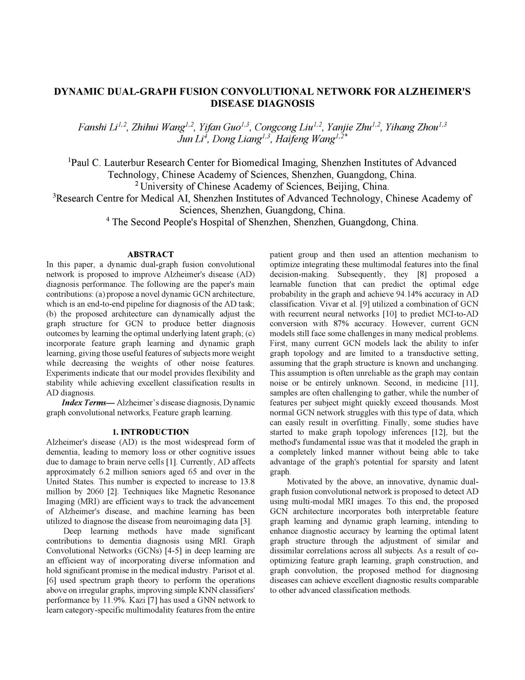 Dynamic Dual-Graph Fusion Convolutional Network For Alzheimer's Disease
