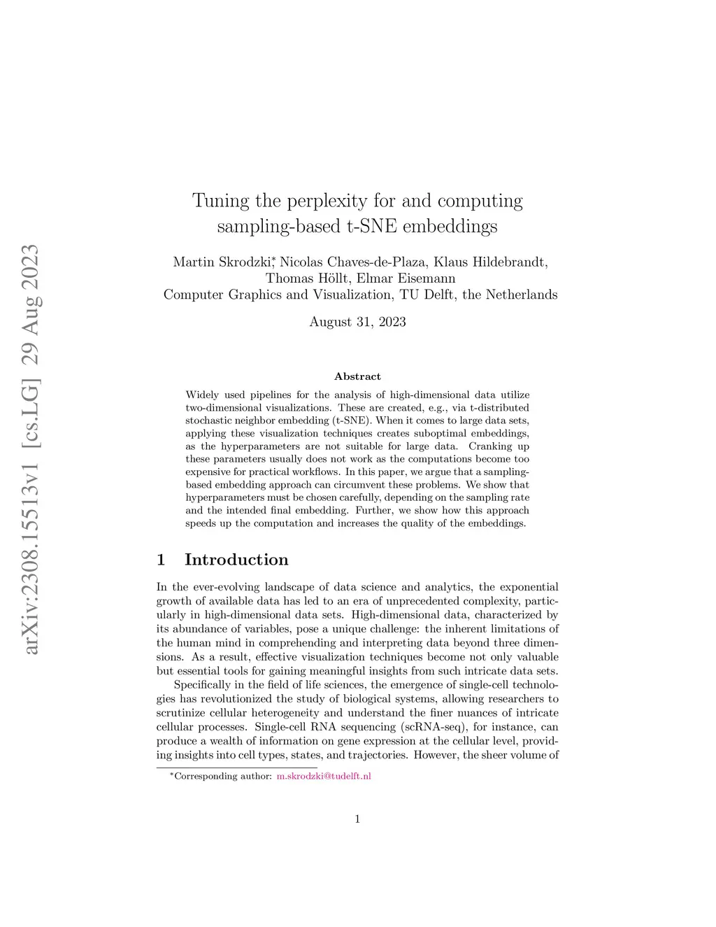 Tuning the perplexity for and computing sampling-based t-SNE embeddings