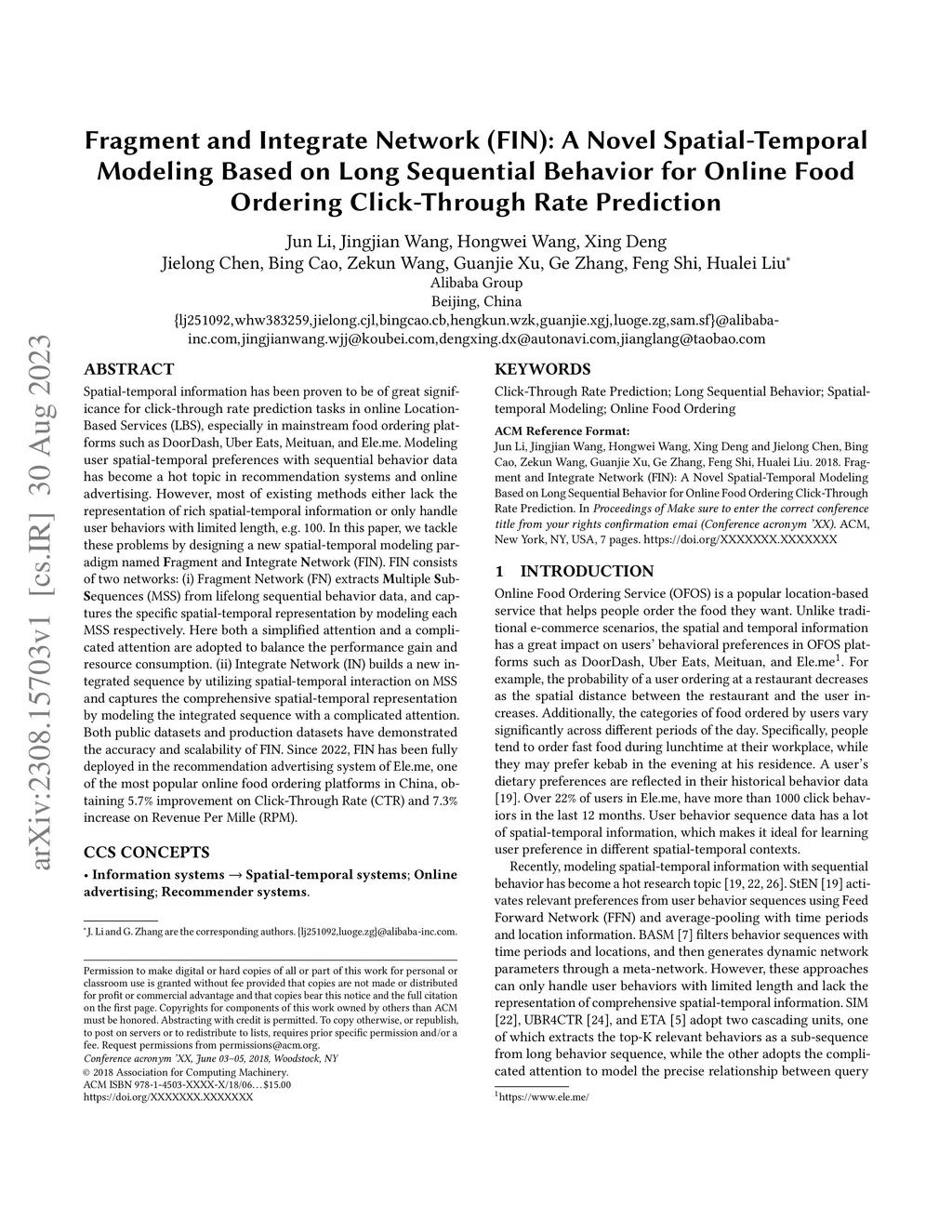 Based on Long Sequential Behavior for Online Food Ordering Click-Through Rate