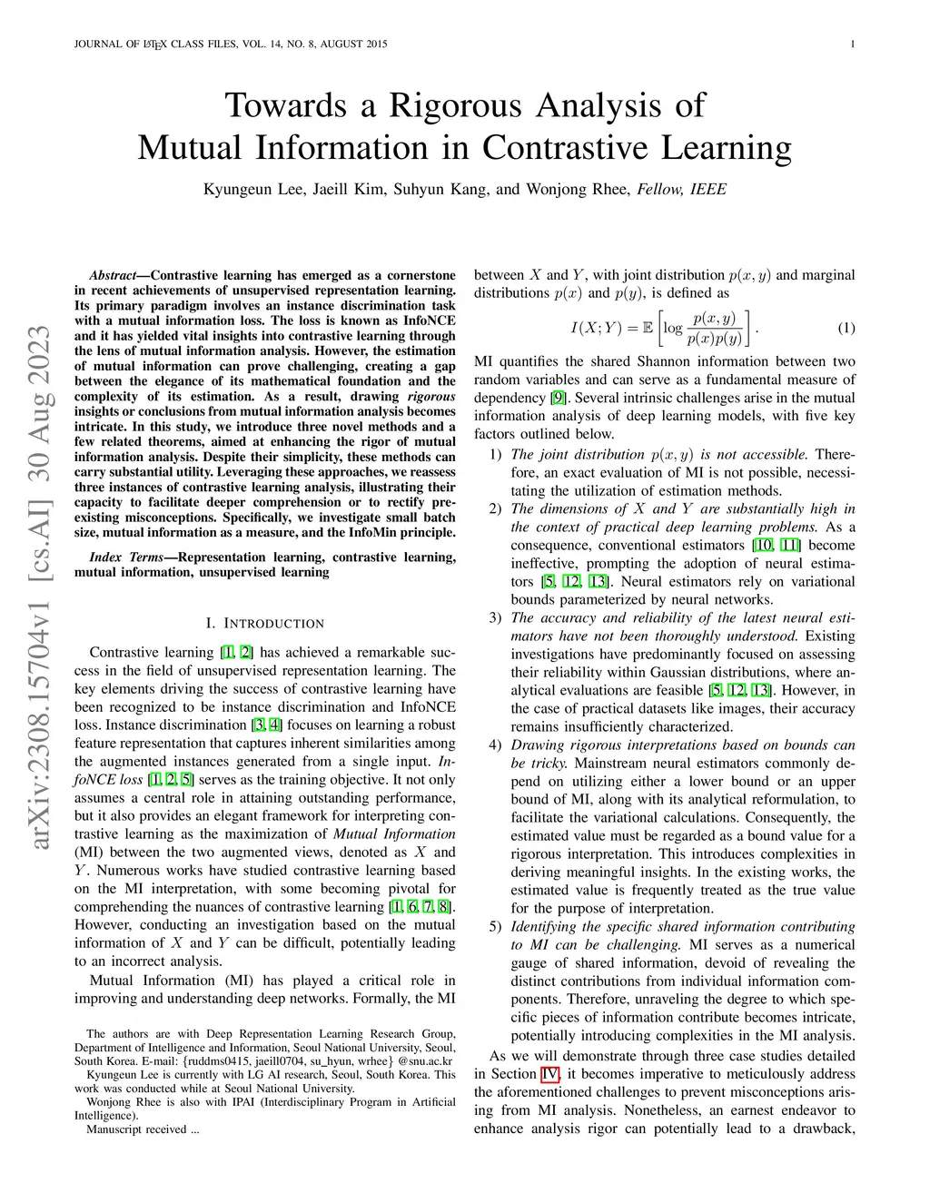 Towards a Rigorous Analysis of Mutual Information in Contrastive