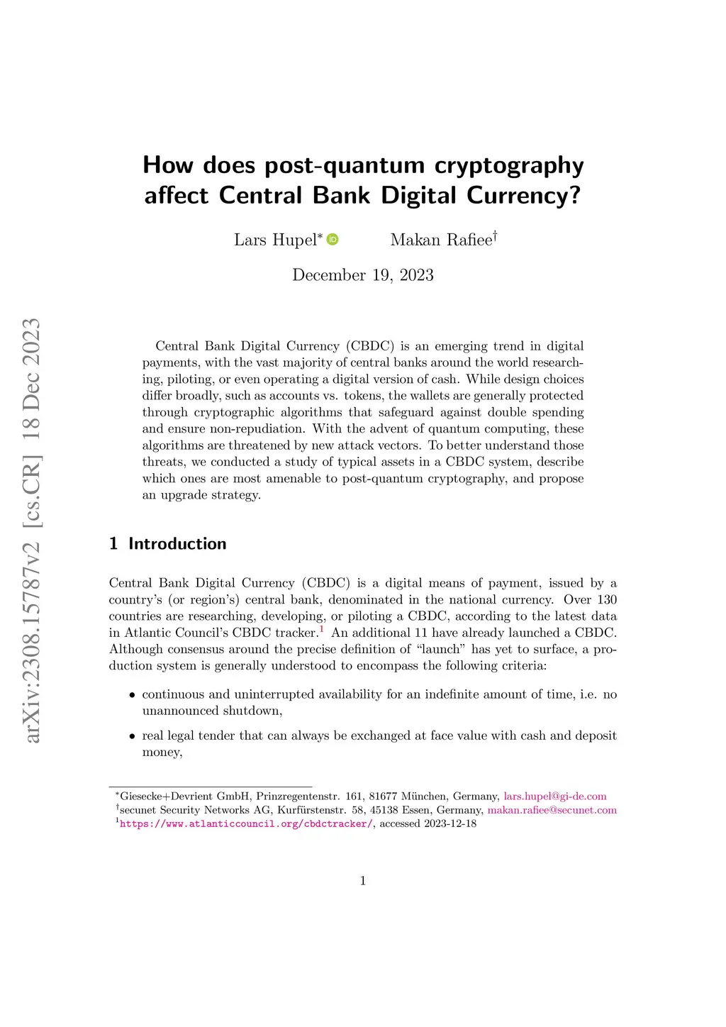 How does post-quantum cryptography affect Central Bank Digital Currency?