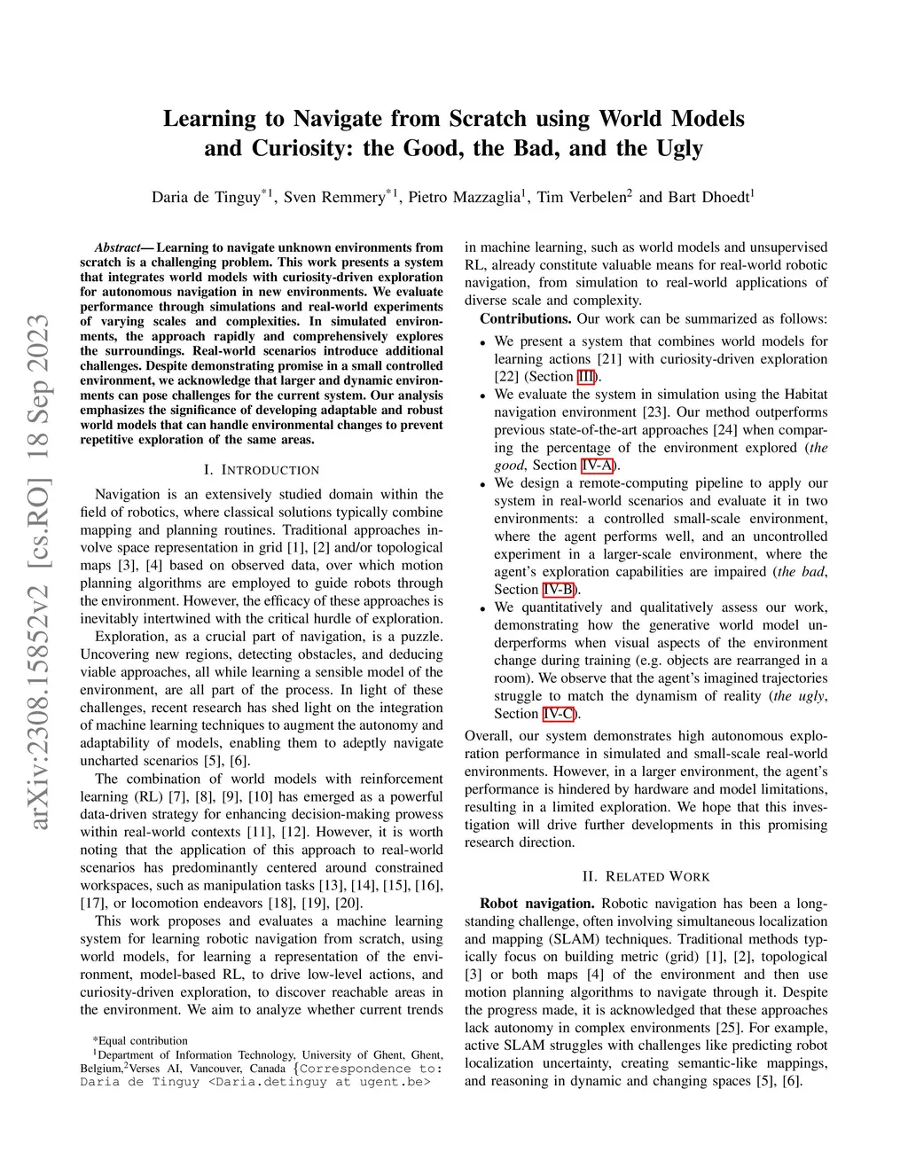 Learning to Navigate from Scratch using World Models and Curiosity: the