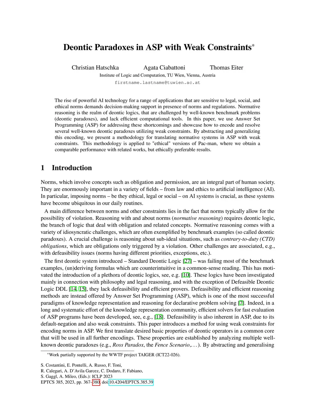 The rise of powerful AI technology for a range of applications that are sensitive to legal, social, and ethical norms demands decision-making support in presence of norms and regulations. Normative reasoning is the realm of deontic logics, that are challenged by well-known benchmark problems (deontic paradoxes), and lack efficient computational tools. In this paper, we use Answer Set Programming (ASP) for addressing these shortcomings and showcase how to encode and resolve several well-known deontic paradoxes utilizing weak constraints. By abstracting and generalizing this encoding, we present a methodology for translating normative systems in ASP with weak constraints. This methodology is applied to "ethical" versions of Pac-man, where we obtain a comparable performance with related works, but ethically preferable results.