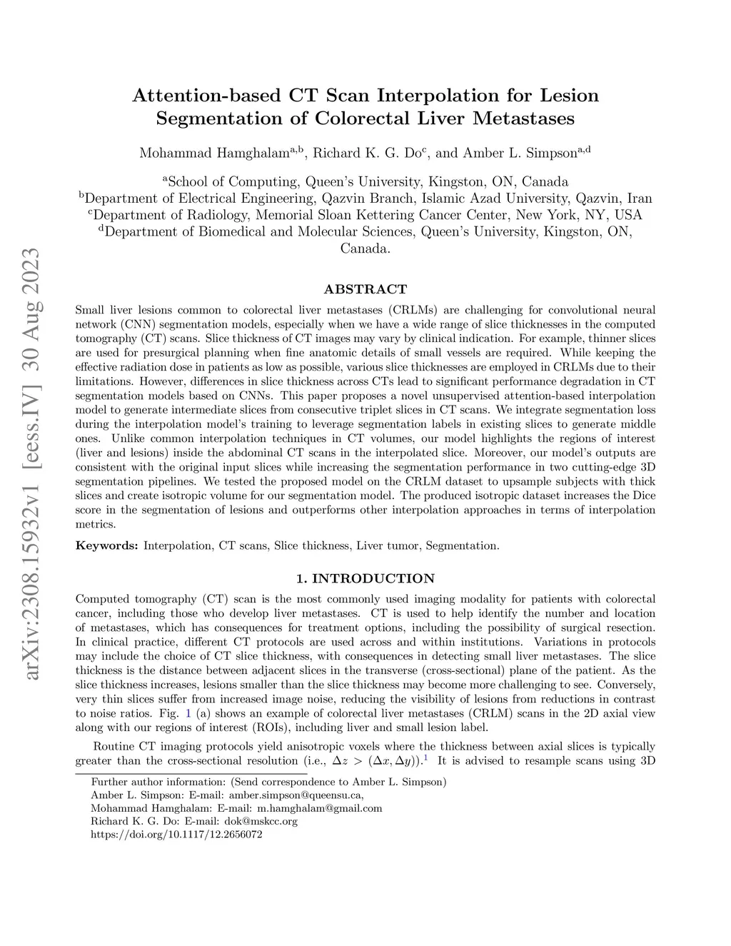 Attention-based CT Scan Interpolation for Lesion Segmentation of