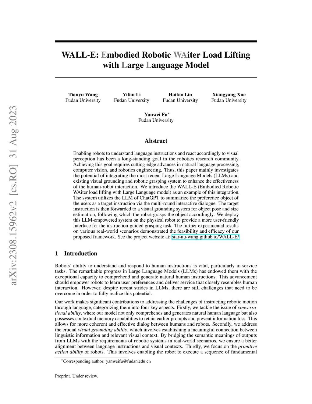 WALL-E: Embodied Robotic WAiter Load Lifting with Large Language Model