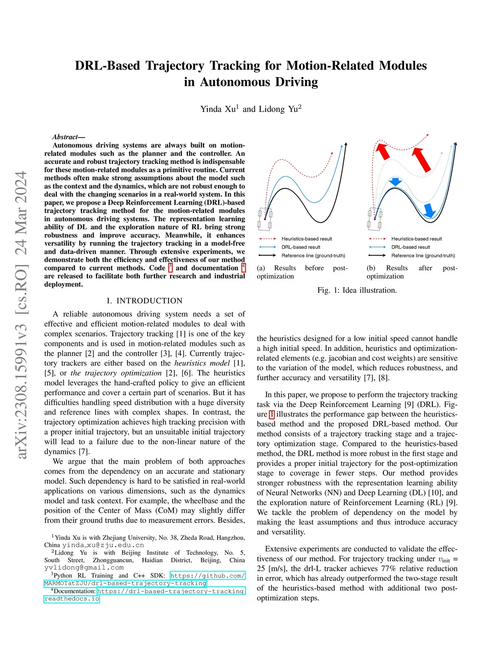 DRL-Based Trajectory Tracking for Motion-Related Modules in Autonomous