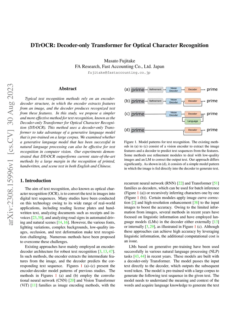 DTrOCR: Decoder-only Transformer for Optical Character Recognition