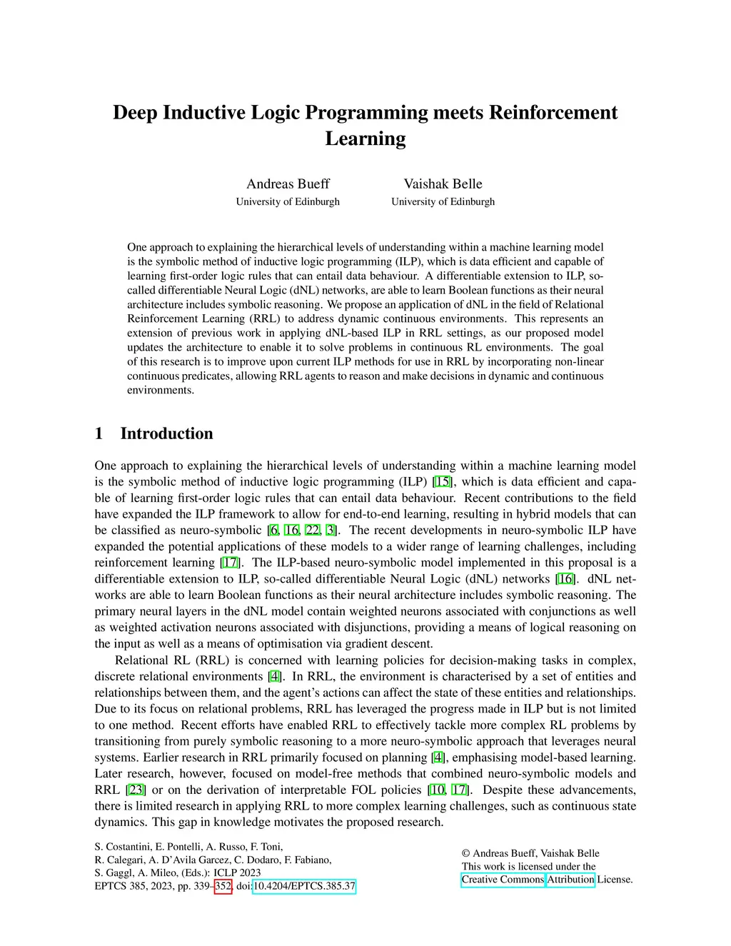 One approach to explaining the hierarchical levels of understanding within a machine learning model is the symbolic method of inductive logic programming (ILP), which is data efficient and capable of learning first-order logic rules that can entail data behaviour. A differentiable extension to ILP, so-called differentiable Neural Logic (dNL) networks, are able to learn Boolean functions as their neural architecture includes symbolic reasoning. We propose an application of dNL in the field of Relational Reinforcement Learning (RRL) to address dynamic continuous environments. This represents an extension of previous work in applying dNL-based ILP in RRL settings, as our proposed model updates the architecture to enable it to solve problems in continuous RL environments. The goal of this research is to improve upon current ILP methods for use in RRL by incorporating non-linear continuous predicates, allowing RRL agents to reason and make decisions in dynamic and continuous environments.